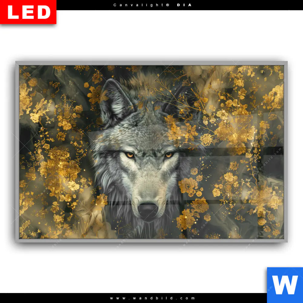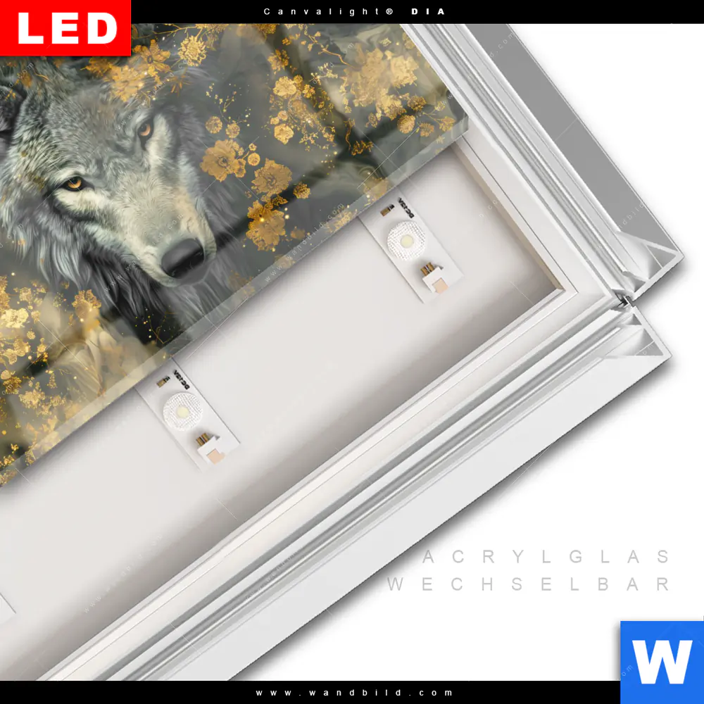 Canvalight® DIA Leuchtbild | Goldener Wolfblick | Querformat