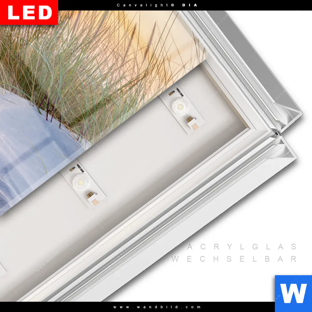 LED-Glasbild mit austauschbarem Acrylglas-Druck (Wechselbild)