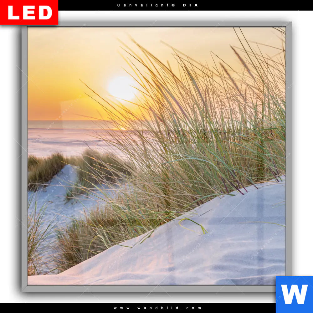 Leuchtbild Acrylglas Canvalight® DIA | Goldenes Licht über Sanddünen | Quadrat