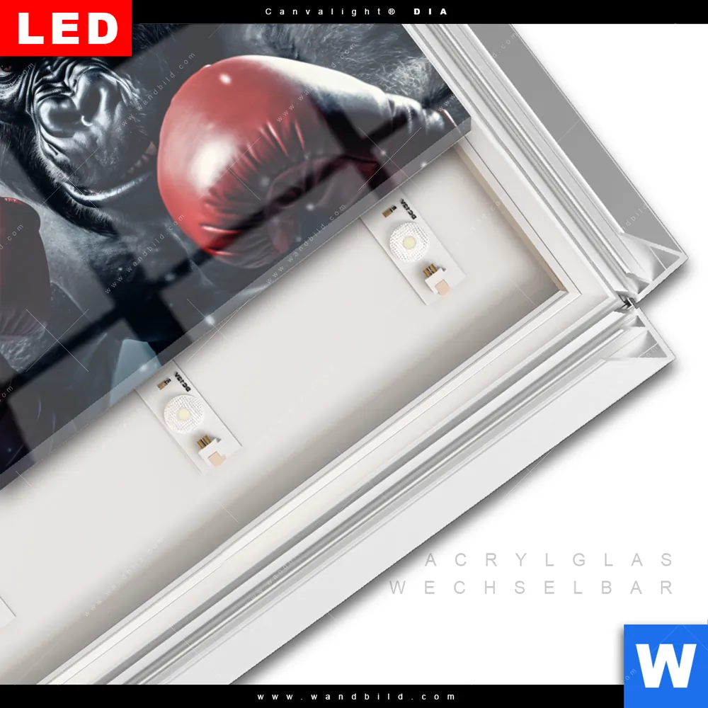LED-Glasbild mit austauschbarem Acrylglas-Druck (Wechselbild)