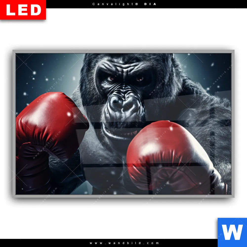 Canvalight® DIA Leuchtbild | Gorilla mit roten Boxhandschuhen | Querformat