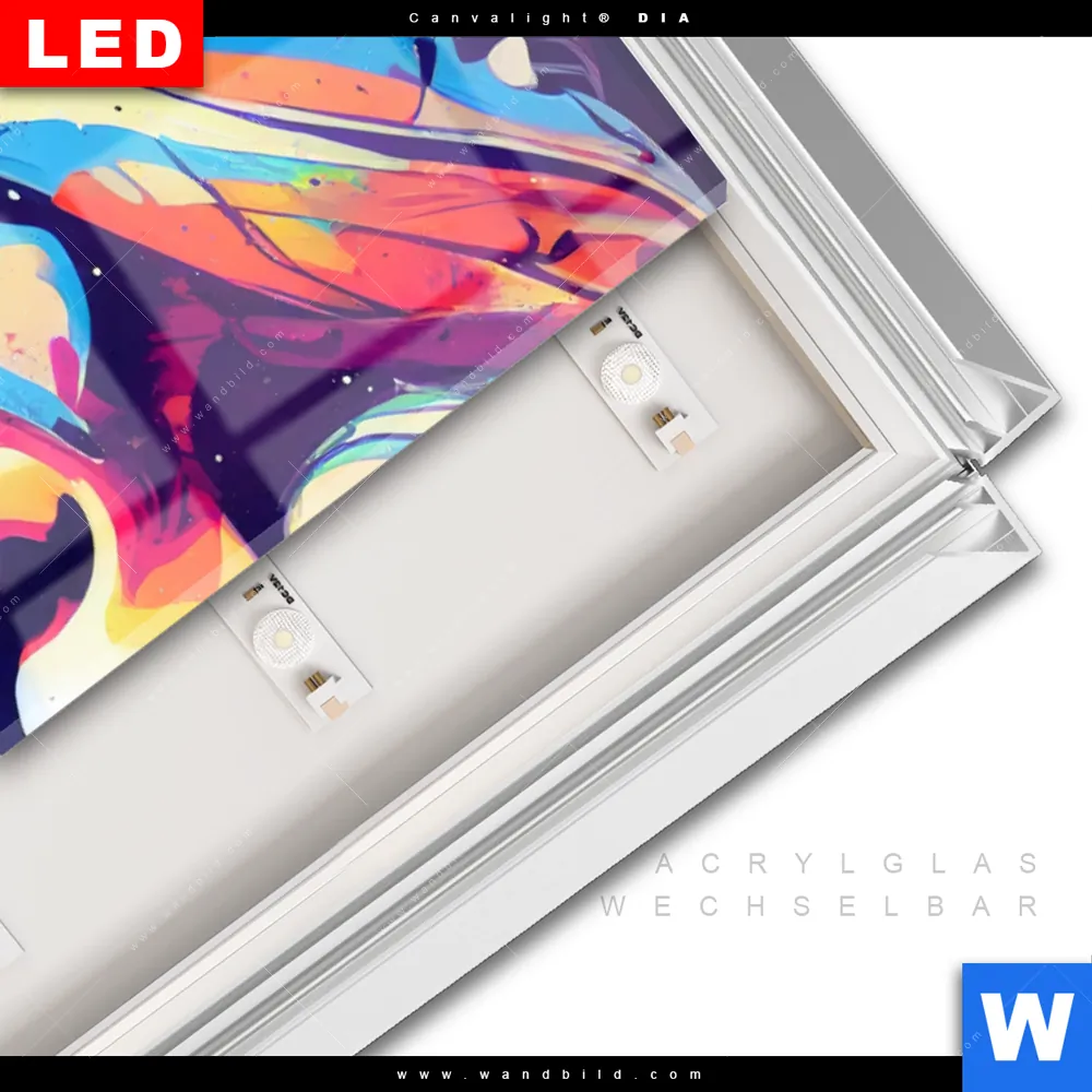 LED-Glasbild mit austauschbarem Acrylglas-Druck (Wechselbild)