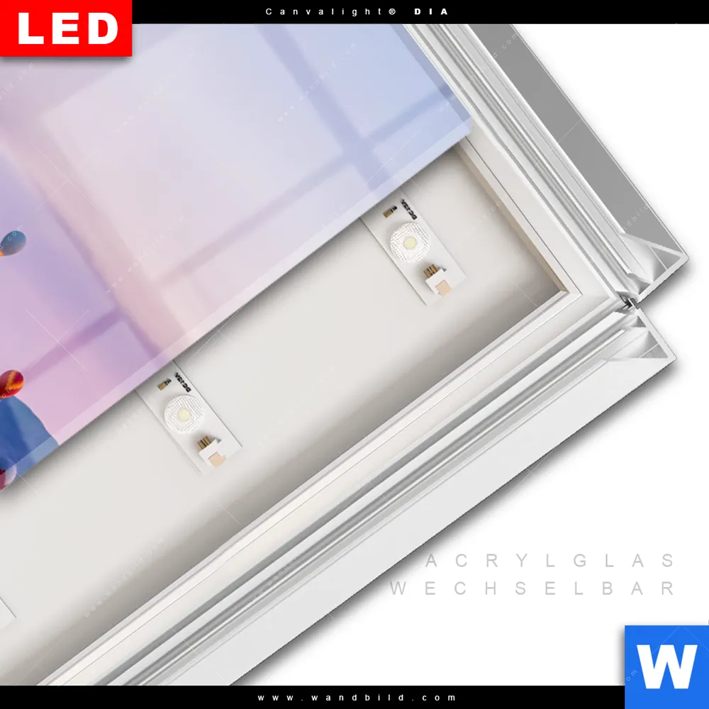 LED-Glasbild mit austauschbarem Acrylglas-Druck (Wechselbild)