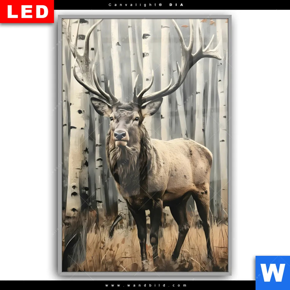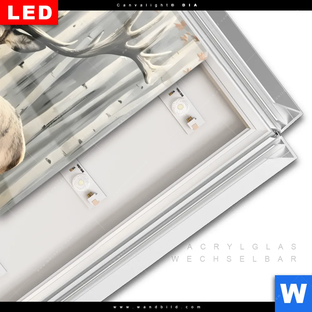Canvalight® DIA Leuchtbild | Hirsch im Birkenwald | Hochformat