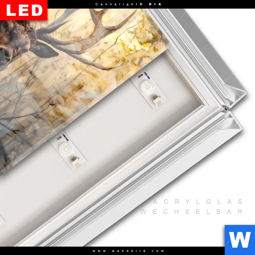 LED-Glasbild mit austauschbarem Acrylglas-Druck (Wechselbild)
