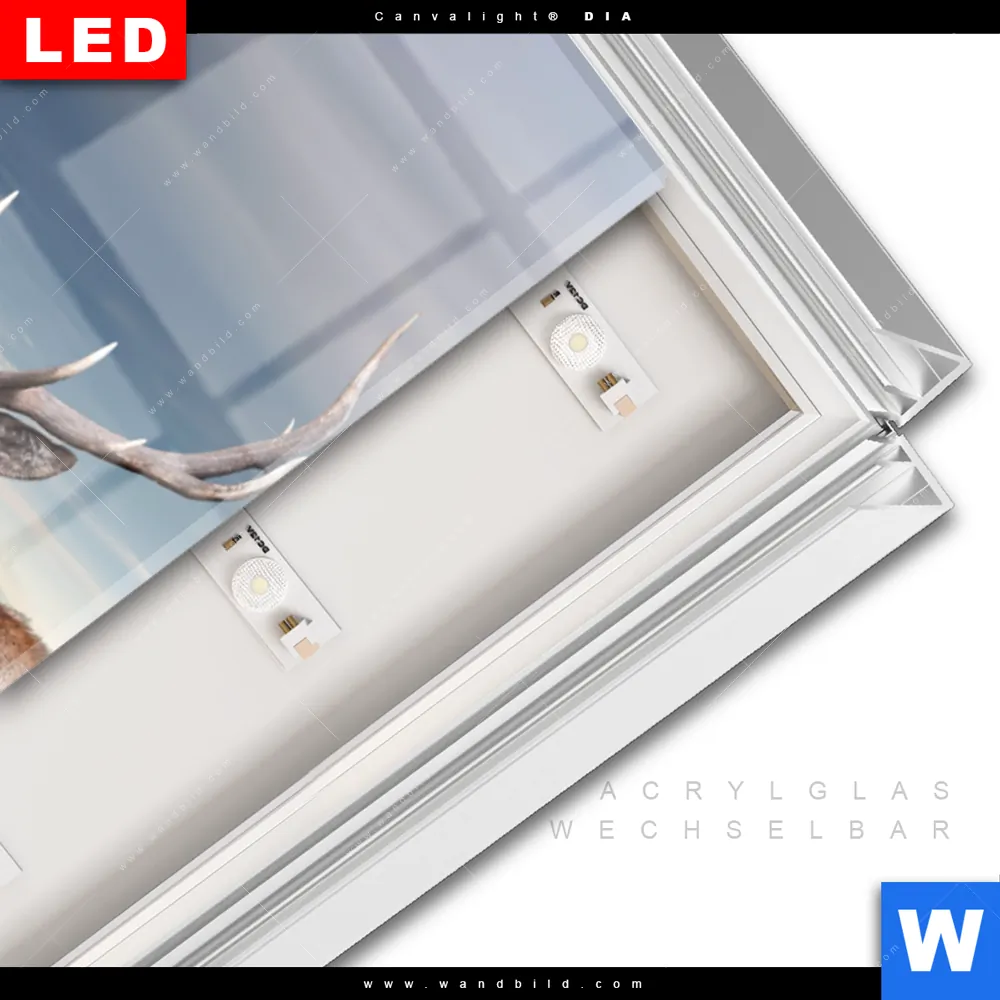 LED-Glasbild mit austauschbarem Acrylglas-Druck (Wechselbild)