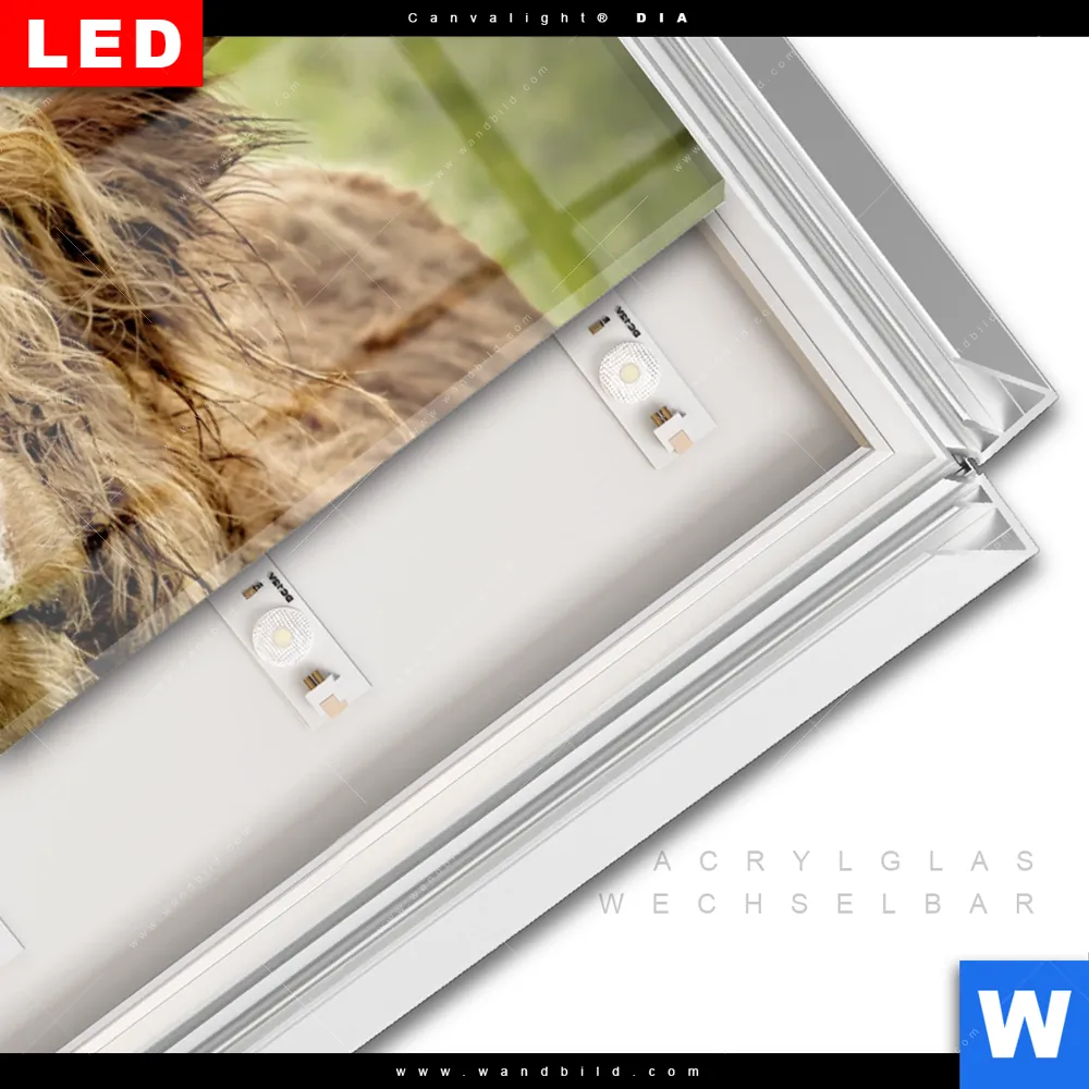 LED-Glasbild mit austauschbarem Acrylglas-Druck (Wechselbild)