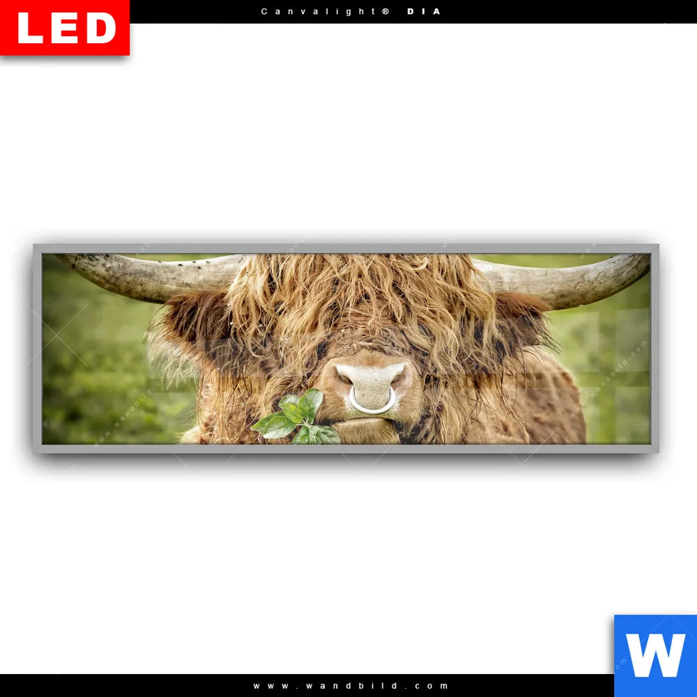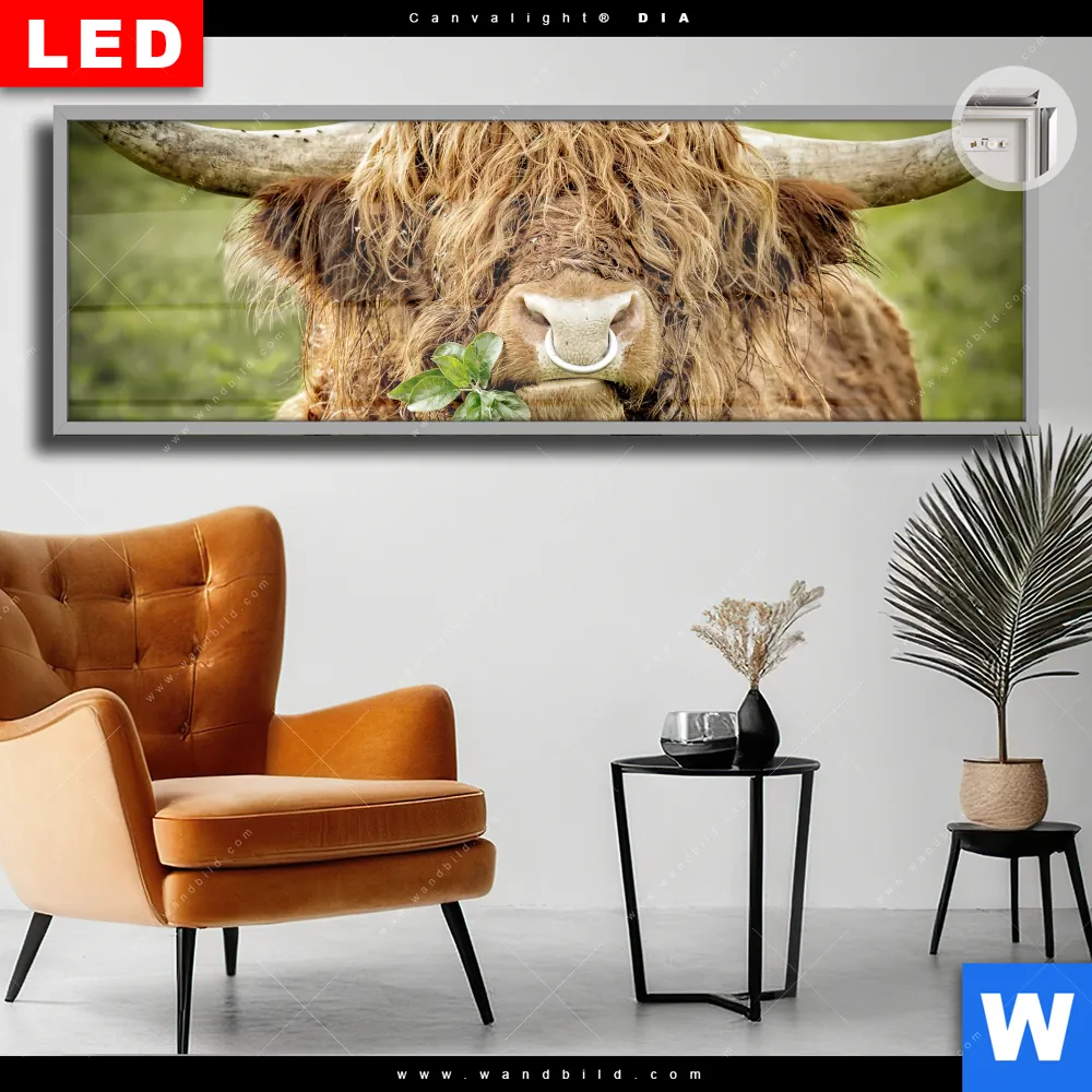 Canvalight® DIA Leuchtbild | Hochland-Rind mit Nasenring | Panorama
