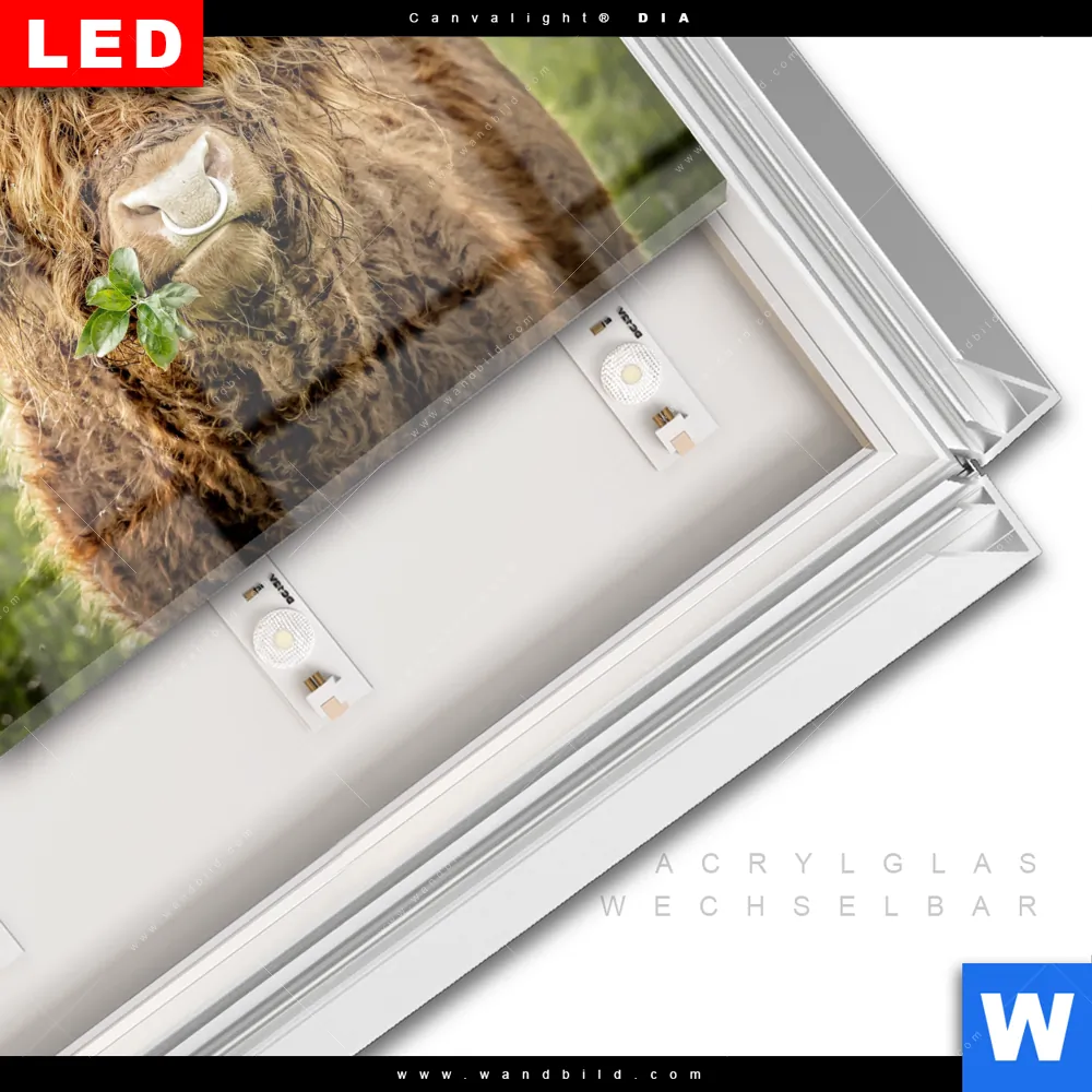 Canvalight® DIA Leuchtbild | Hochland-Rind mit Nasenring | Querformat