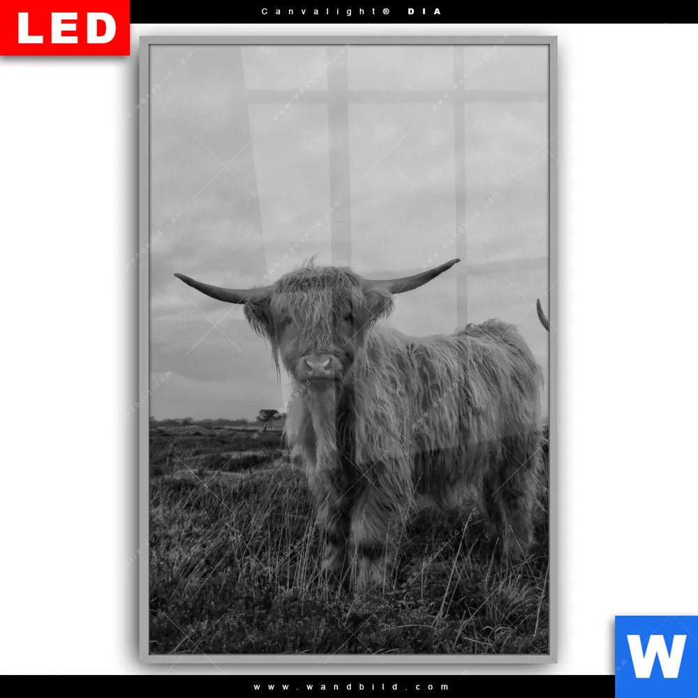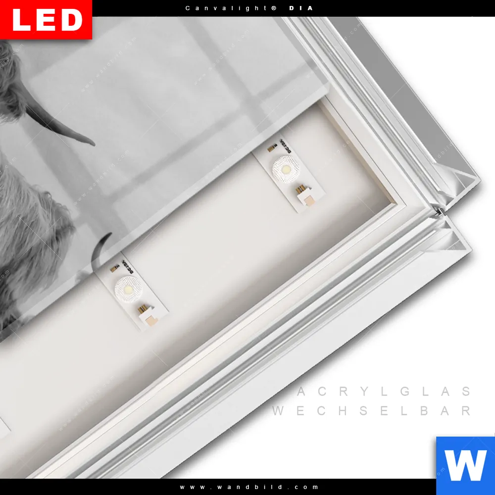 Canvalight® DIA Leuchtbild | Hochland-Rind Schwarz-Weiß | Hochformat