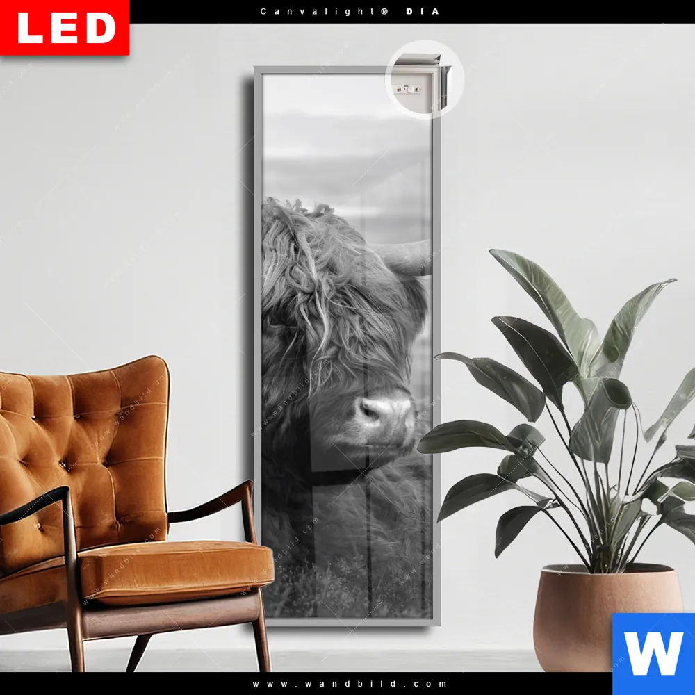 Canvalight® DIA Leuchtbild | Hochland-Rind Schwarz-Weiß No. 2 | Schmal