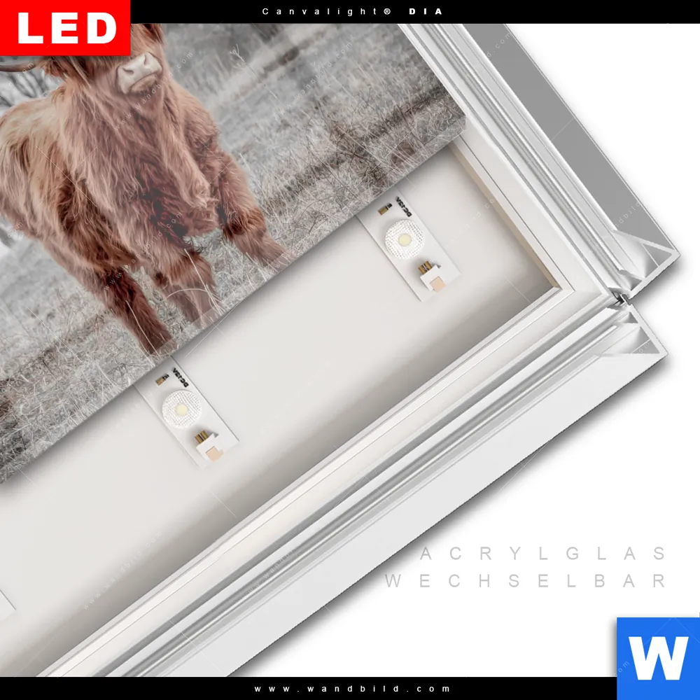 LED-Glasbild mit austauschbarem Acrylglas-Druck (Wechselbild)