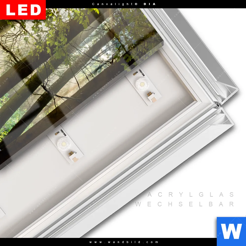 LED-Glasbild mit austauschbarem Acrylglas-Druck (Wechselbild)