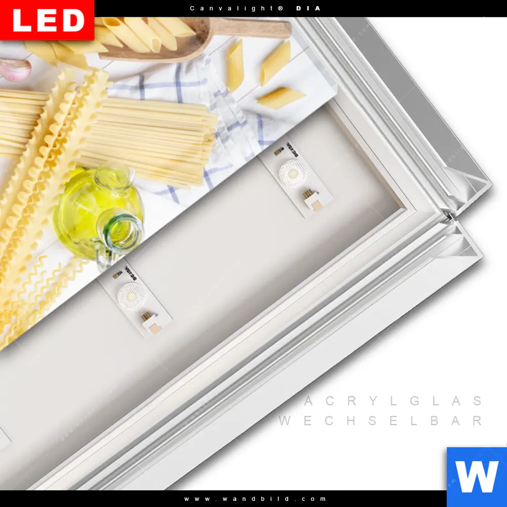 Canvalight® DIA Leuchtbild | Italienische Pasta Vielfalt | Hochformat