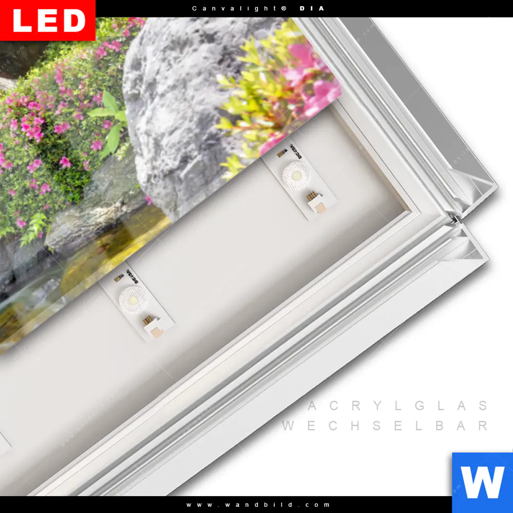LED-Glasbild mit austauschbarem Acrylglas-Druck (Wechselbild)
