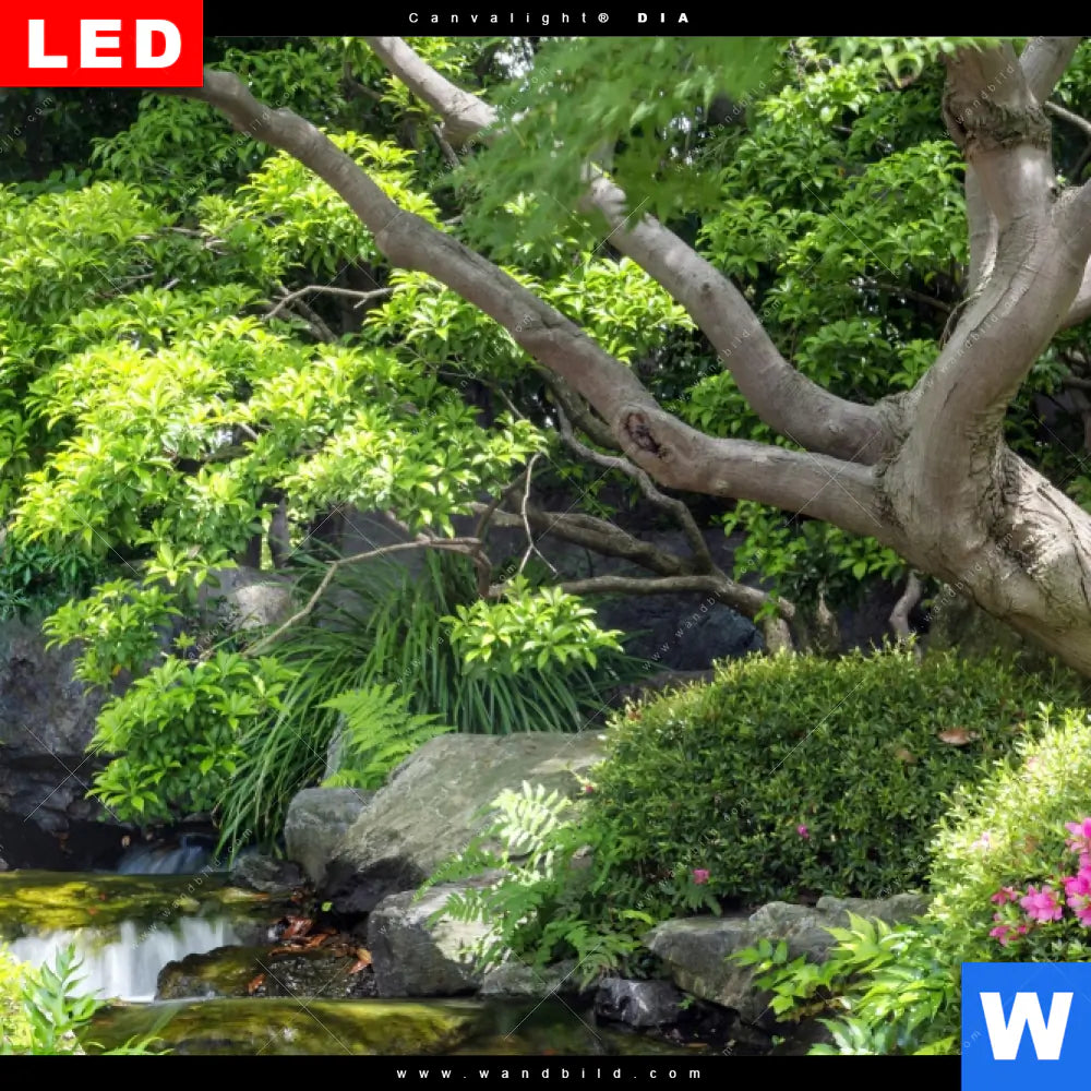 Canvalight® DIA Leuchtbild | Japanischer Garten mit Wasserlauf | Panorama