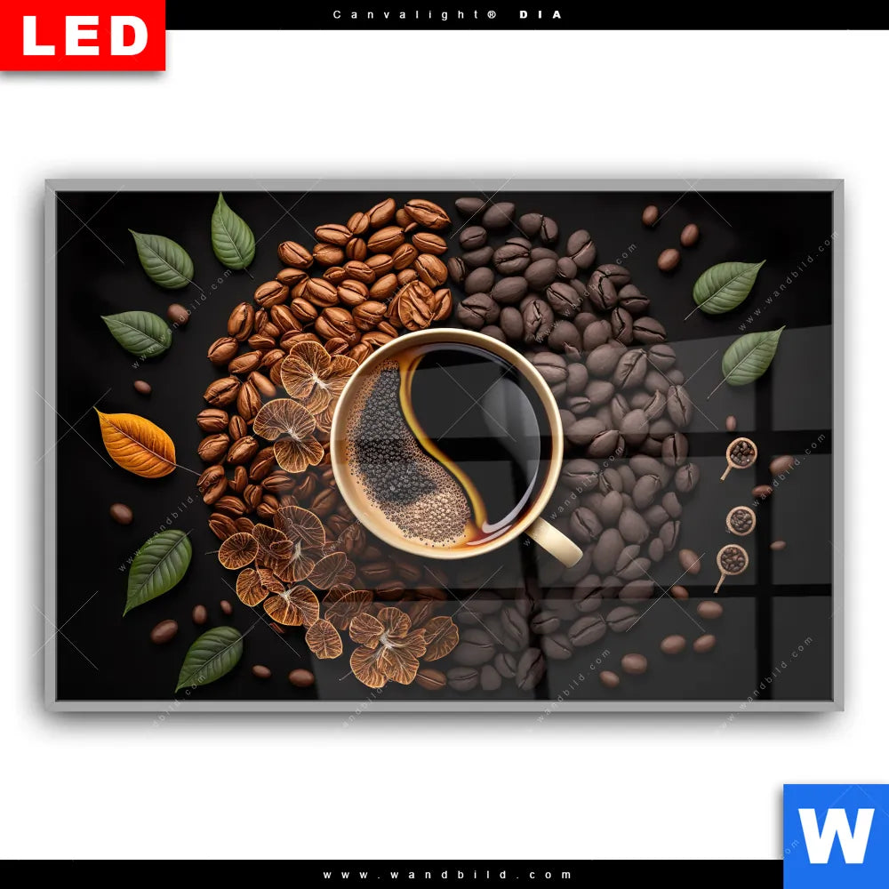 Canvalight® DIA Leuchtbild | Kaffee mit Blattdekoration | Querformat