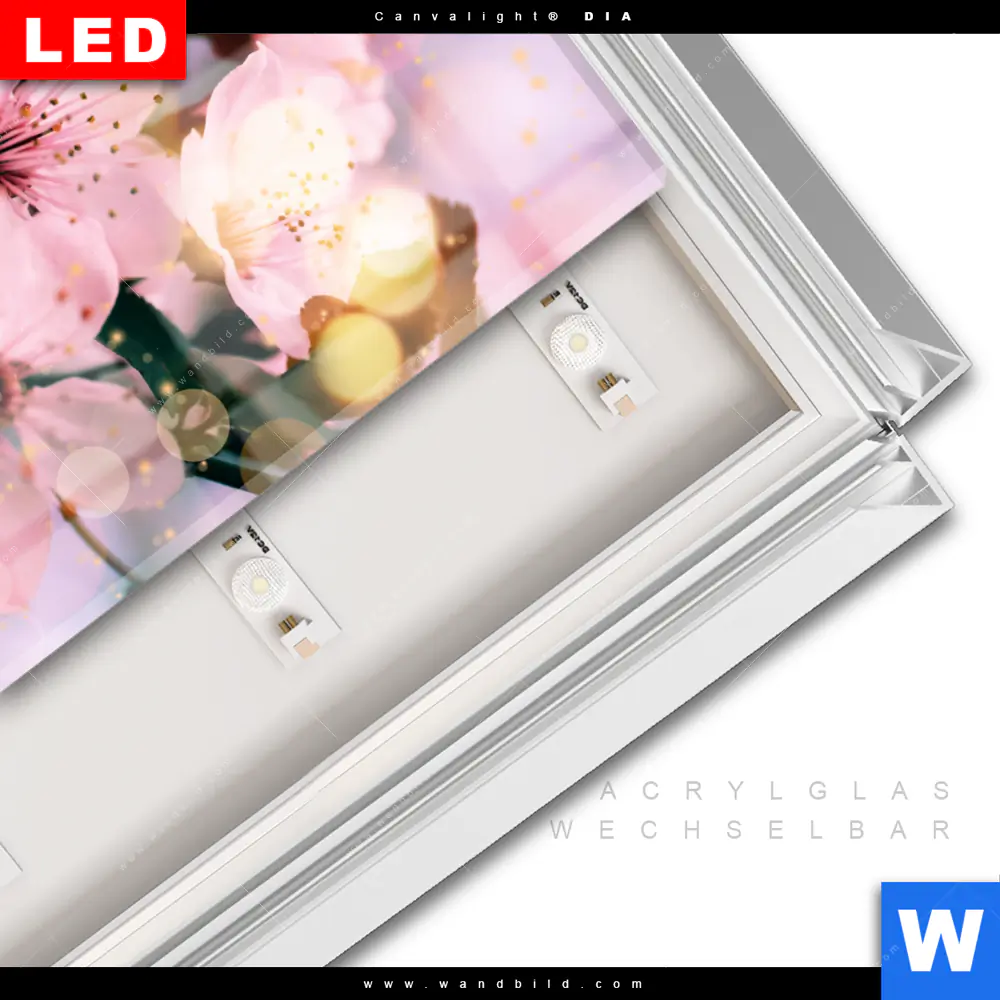 LED-Glasbild mit austauschbarem Acrylglas-Druck (Wechselbild)