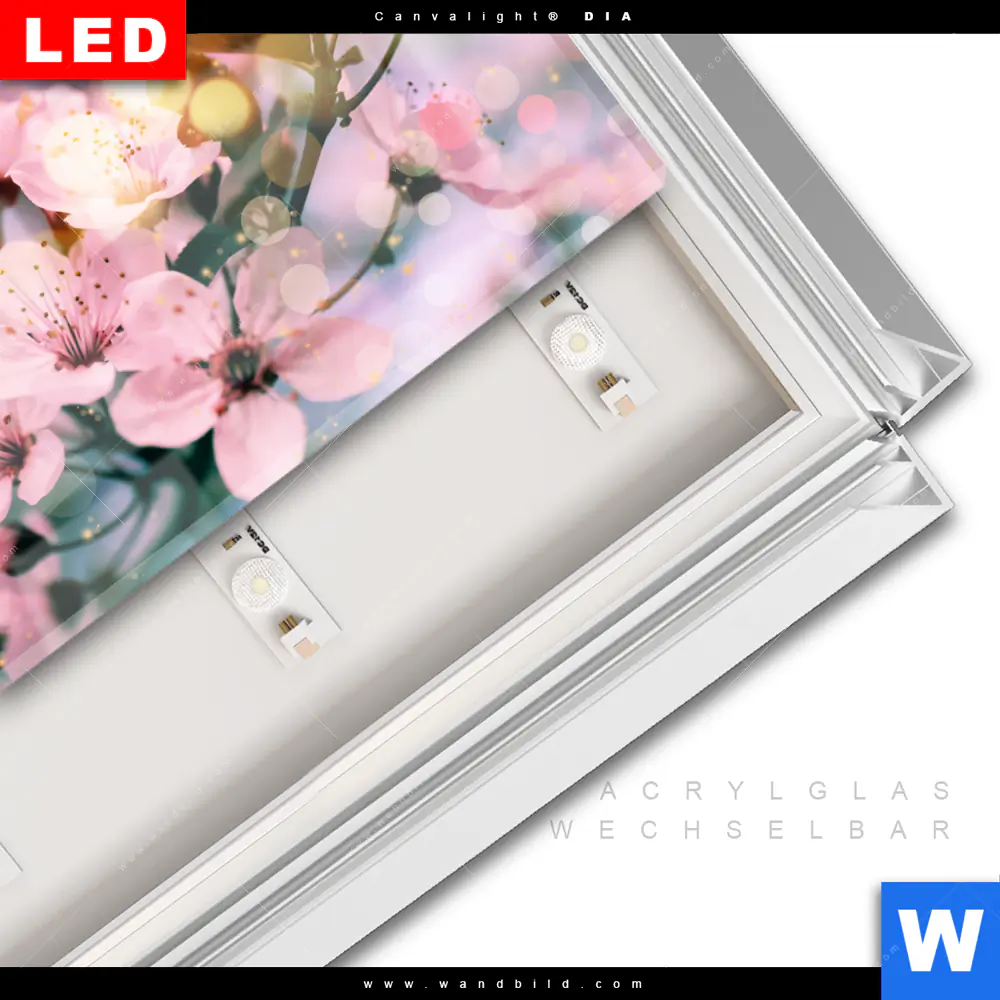 LED-Glasbild mit austauschbarem Acrylglas-Druck (Wechselbild)