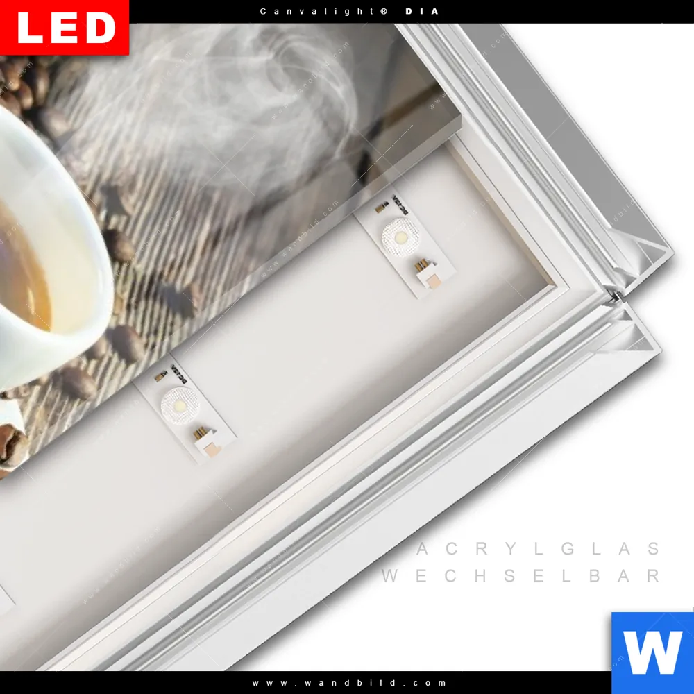 LED-Glasbild mit austauschbarem Acrylglas-Druck (Wechselbild)