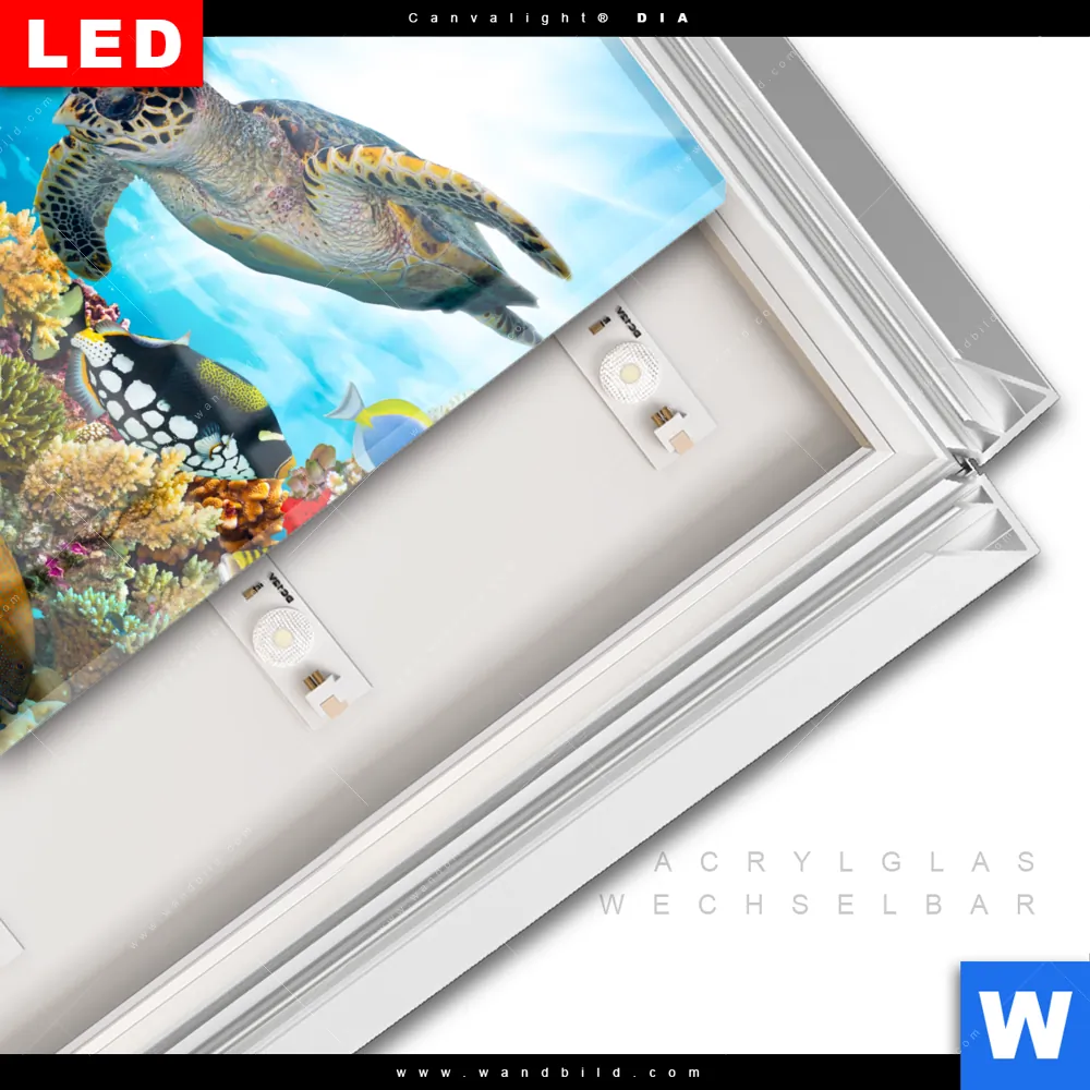 LED-Glasbild mit austauschbarem Acrylglas-Druck (Wechselbild)