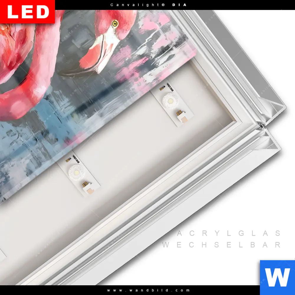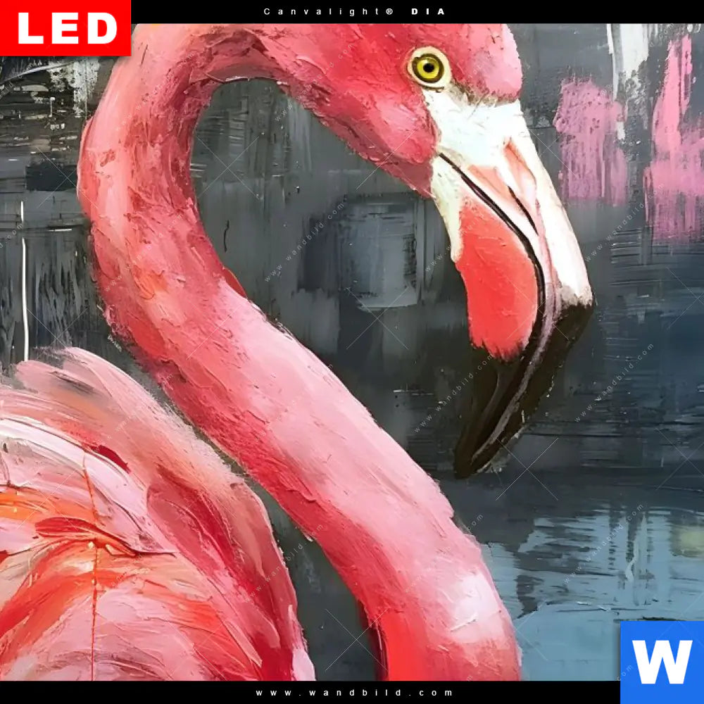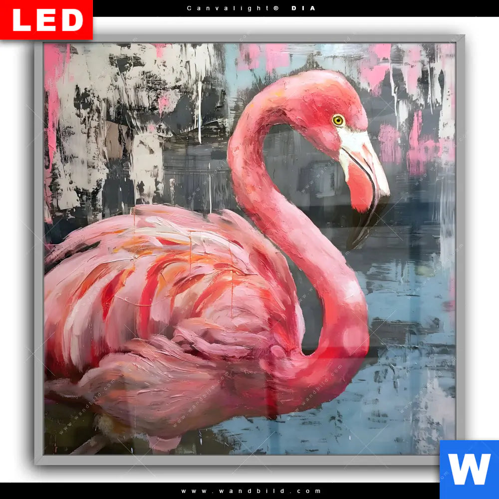 Canvalight® DIA Leuchtbild | Kunstvoller Flamingo | Quadrat