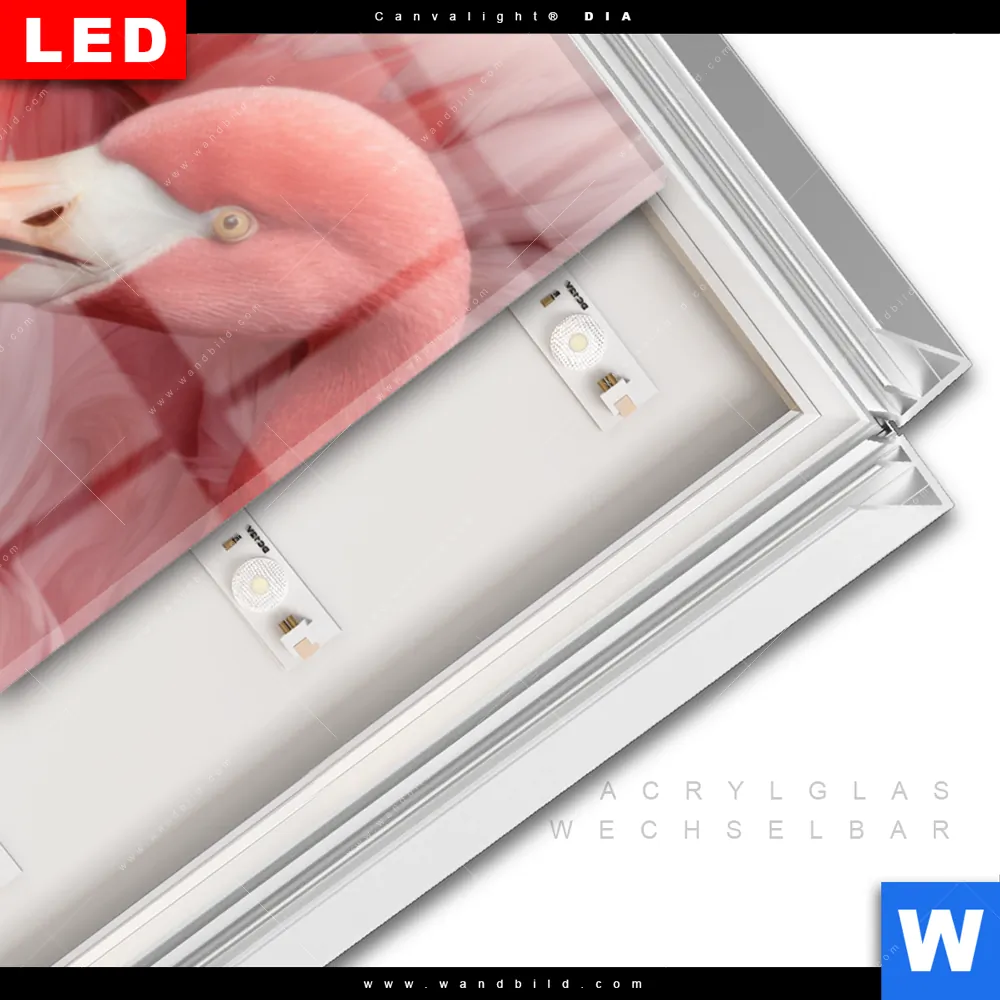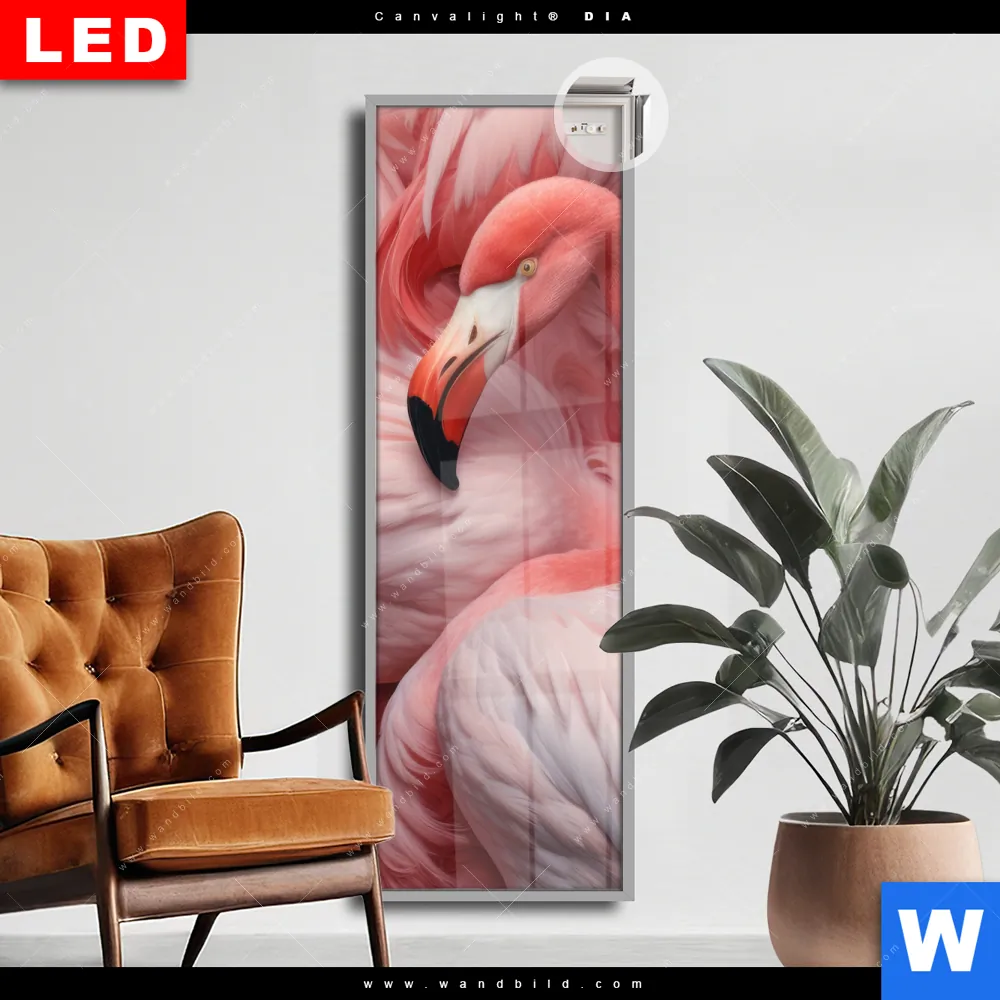 Canvalight® DIA Leuchtbild | Kuschelnde Flamingos | Schmal