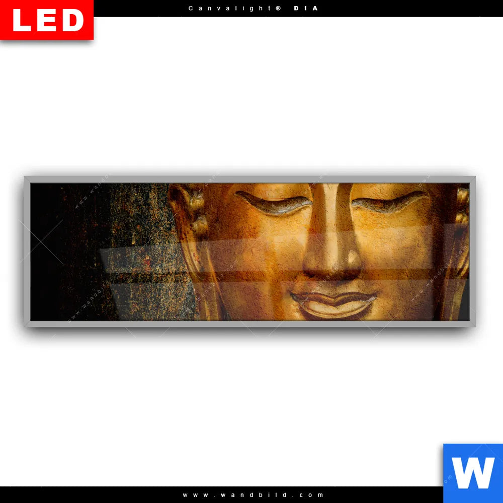Canvalight® DIA Leuchtbild | Lächelnder Buddha in Gold | Panorama