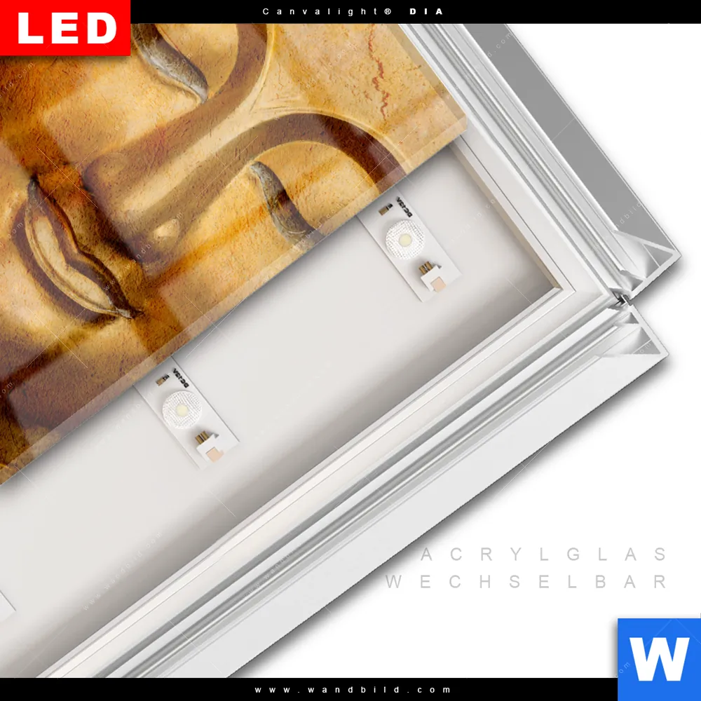 LED-Glasbild mit austauschbarem Acrylglas-Druck (Wechselbild)