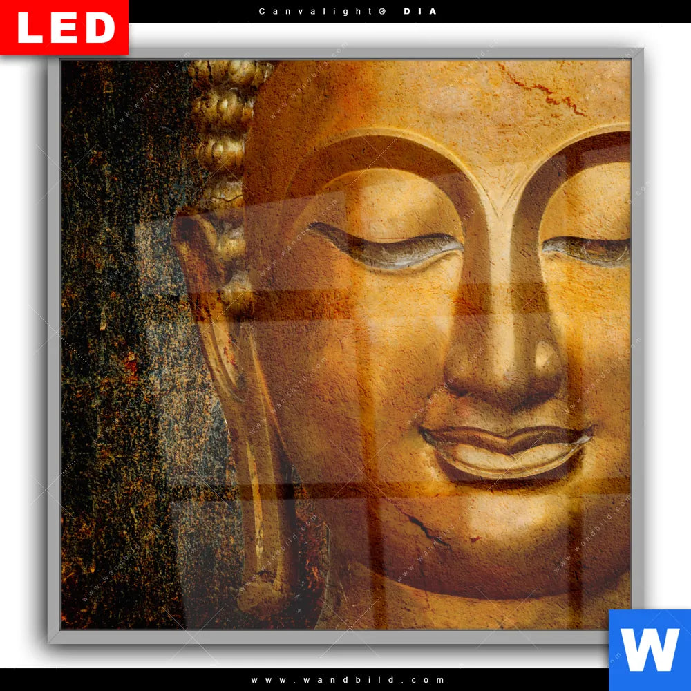 Canvalight® DIA Leuchtbild | Lächelnder Buddha in Gold | Quadrat