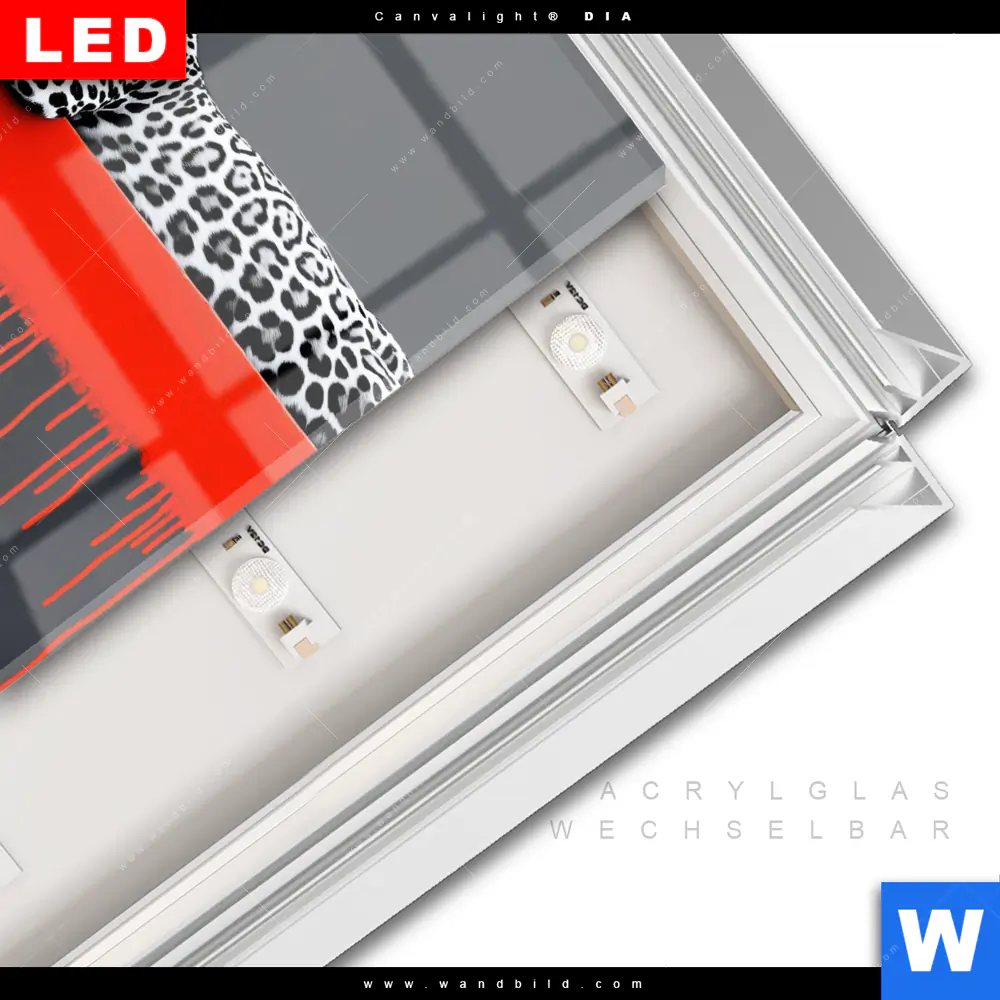 LED-Glasbild mit austauschbarem Acrylglas-Druck (Wechselbild)