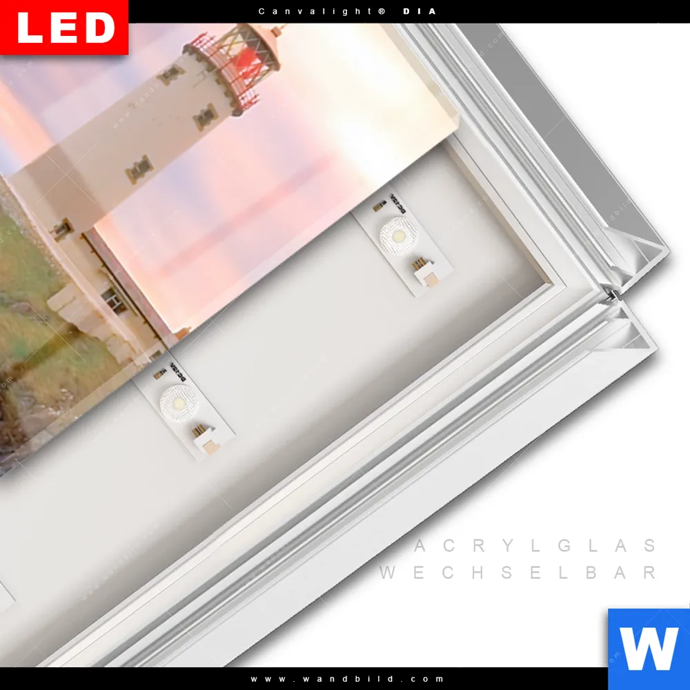LED-Glasbild mit austauschbarem Acrylglas-Druck (Wechselbild)