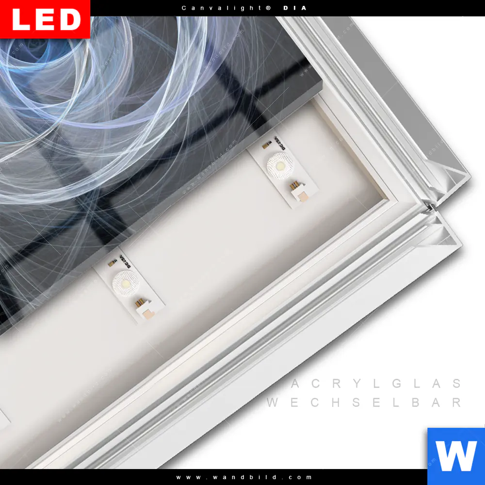 LED-Glasbild mit austauschbarem Acrylglas-Druck (Wechselbild)