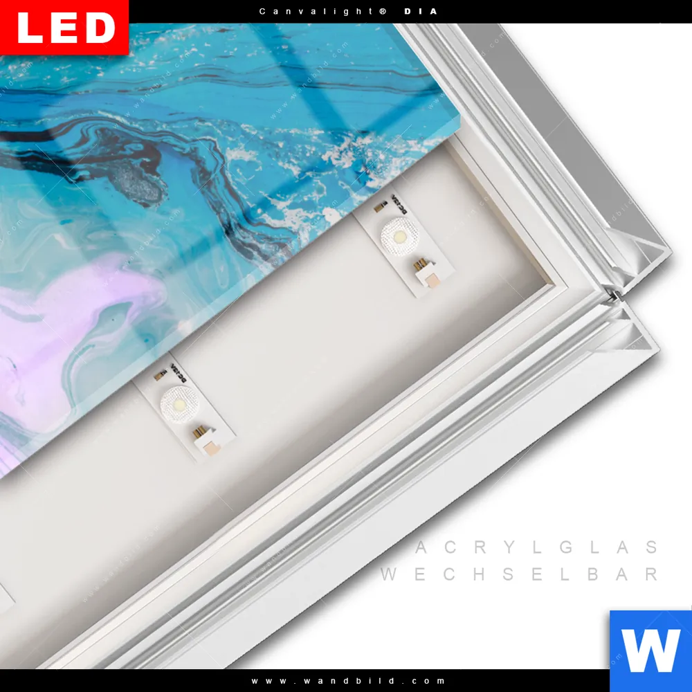 LED-Glasbild mit austauschbarem Acrylglas-Druck (Wechselbild)