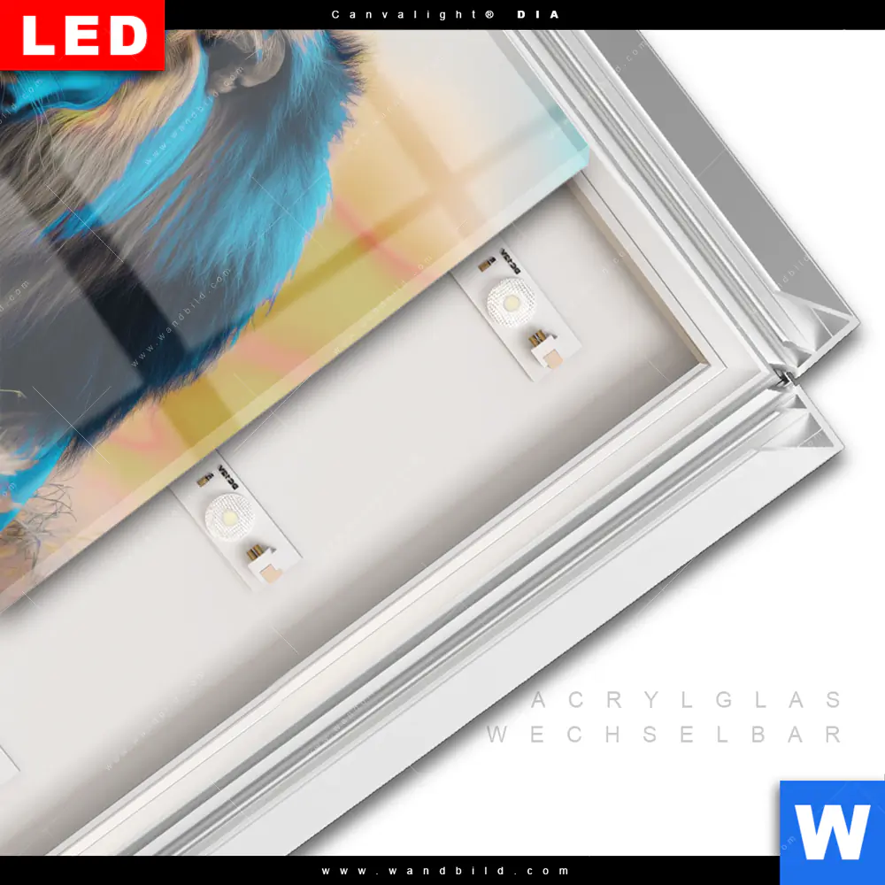 LED-Glasbild mit austauschbarem Acrylglas-Druck (Wechselbild)