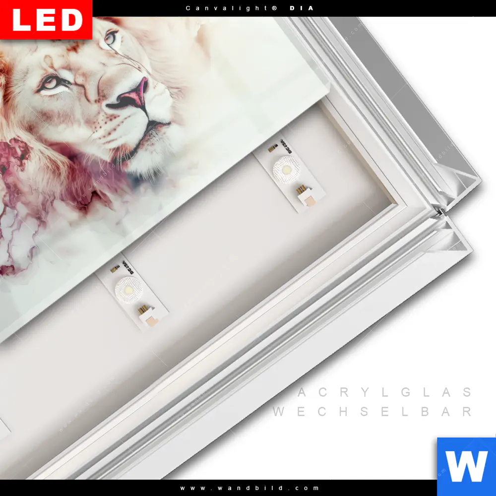 Canvalight® DIA Leuchtbild | Löwe im Farbenspiel | Querformat