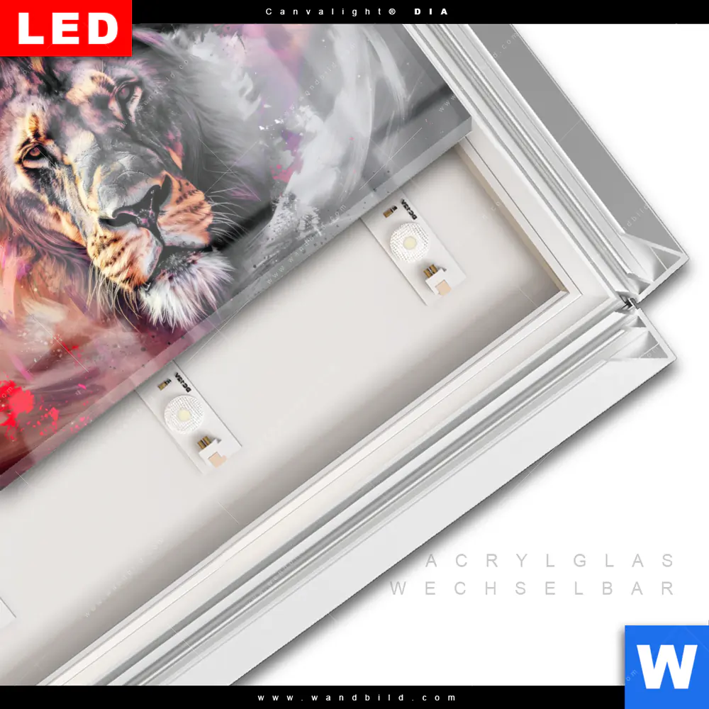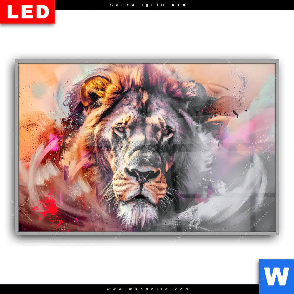 Canvalight® DIA Leuchtbild | Löwe im Farbensturm | Querformat