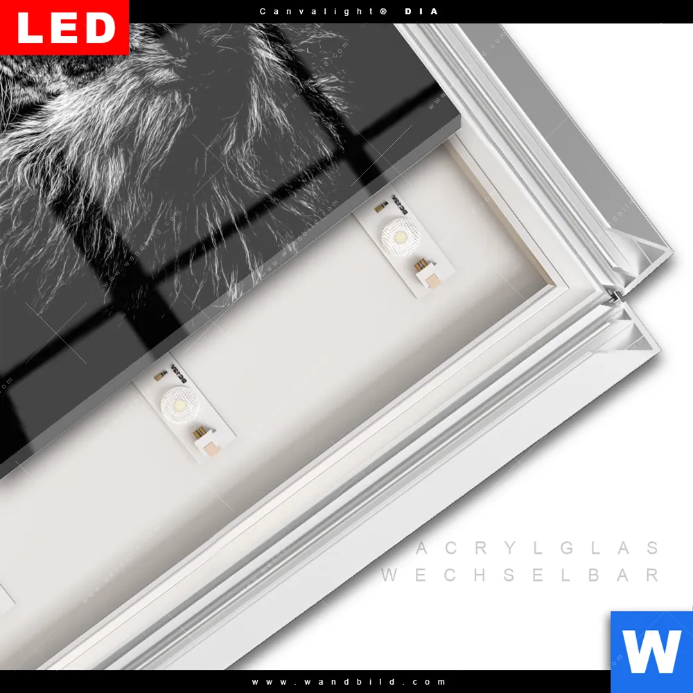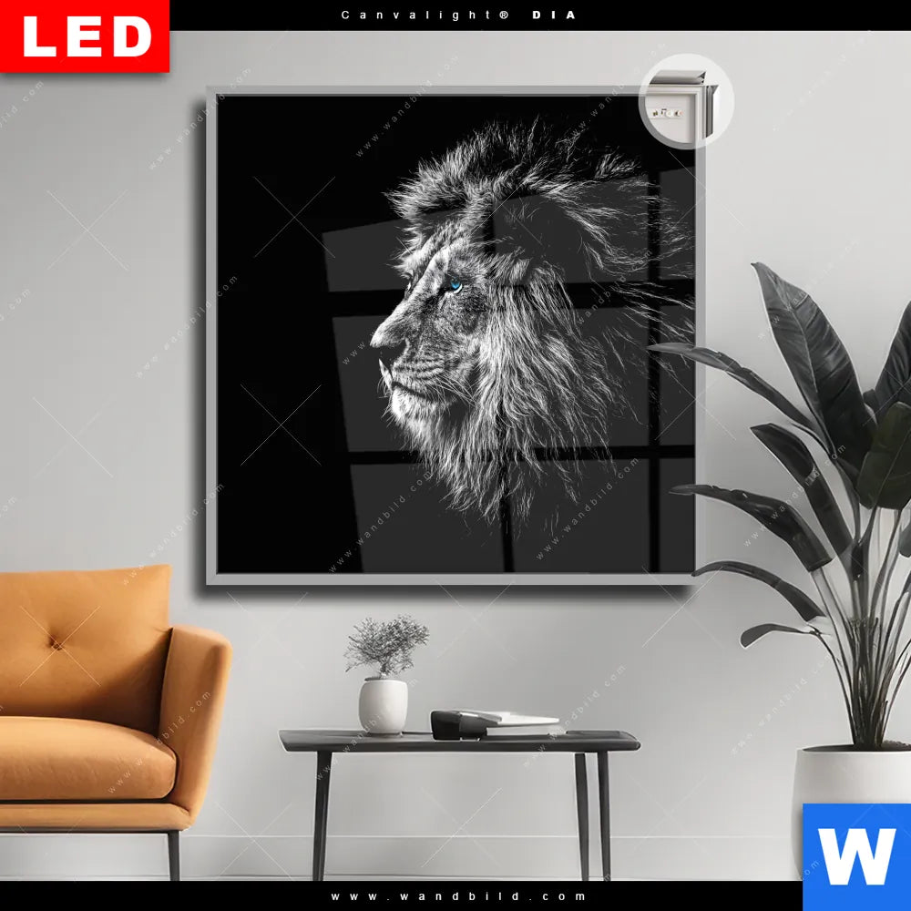 Canvalight® DIA Leuchtbild | Löwe mit blauen Augen | Quadrat