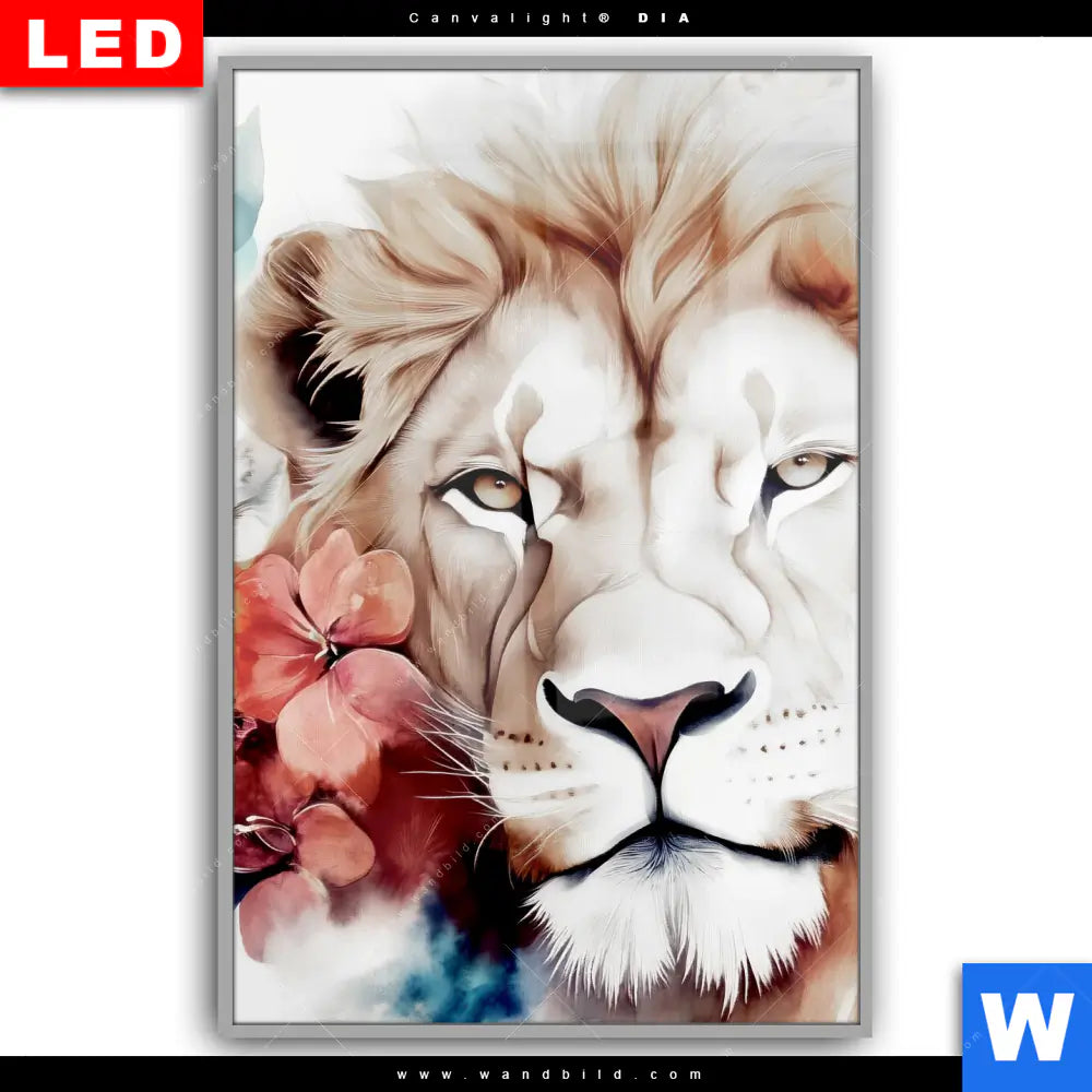 Canvalight® DIA Leuchtbild | Löwe mit Blumen | Hochformat