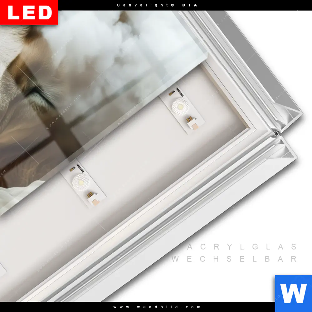 LED-Glasbild mit austauschbarem Acrylglas-Druck (Wechselbild)