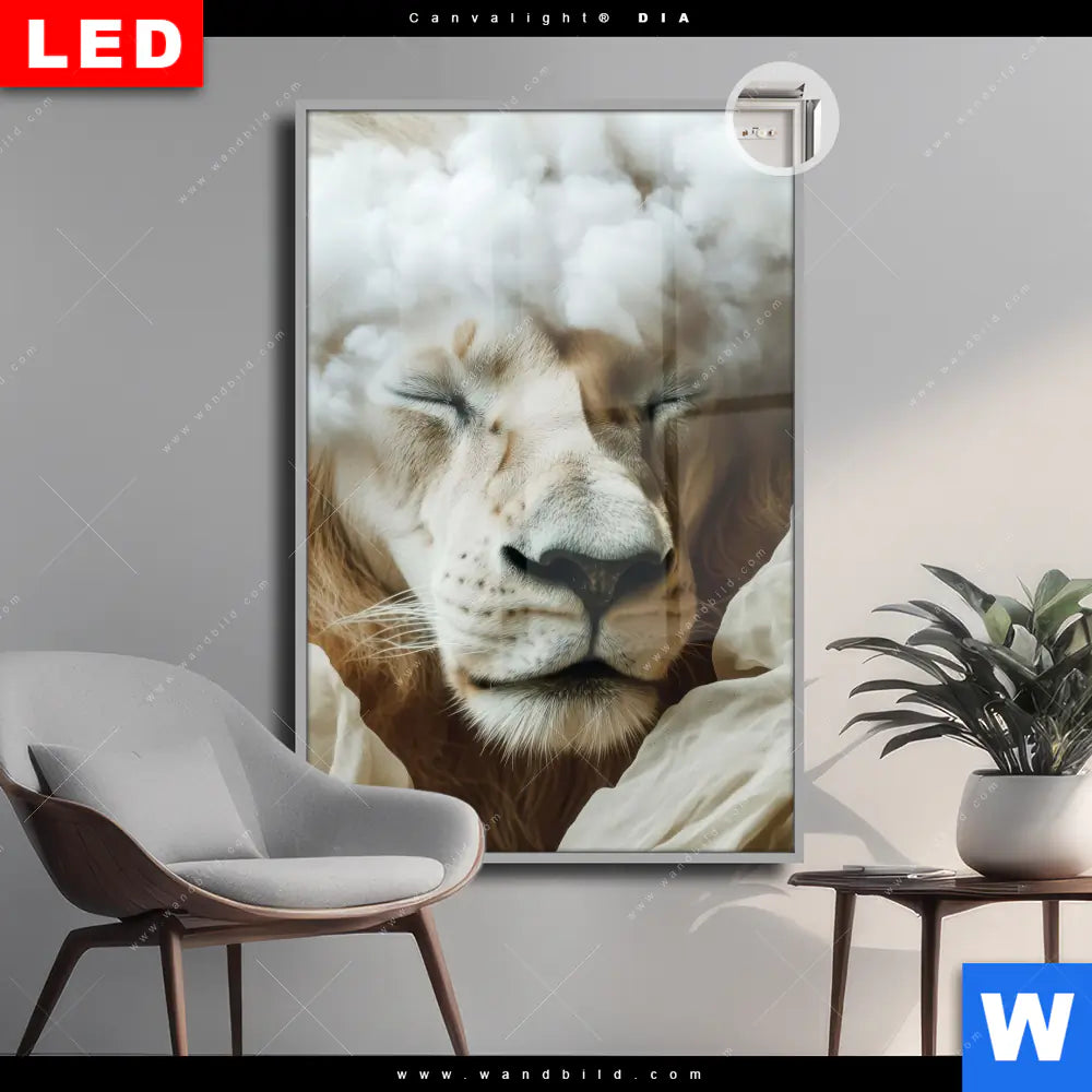 Canvalight® DIA Leuchtbild | Löwe sanft umhüllt | Hochformat