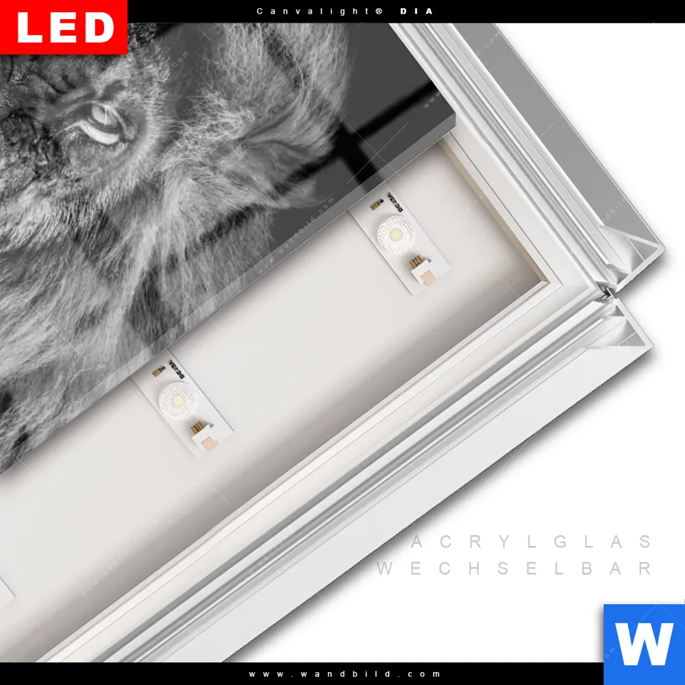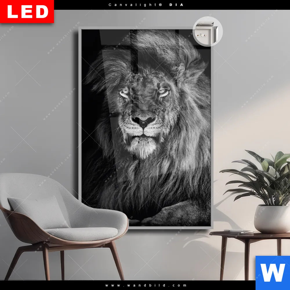 Canvalight® DIA Leuchtbild | Löwe Schwarzweiß | Hochformat