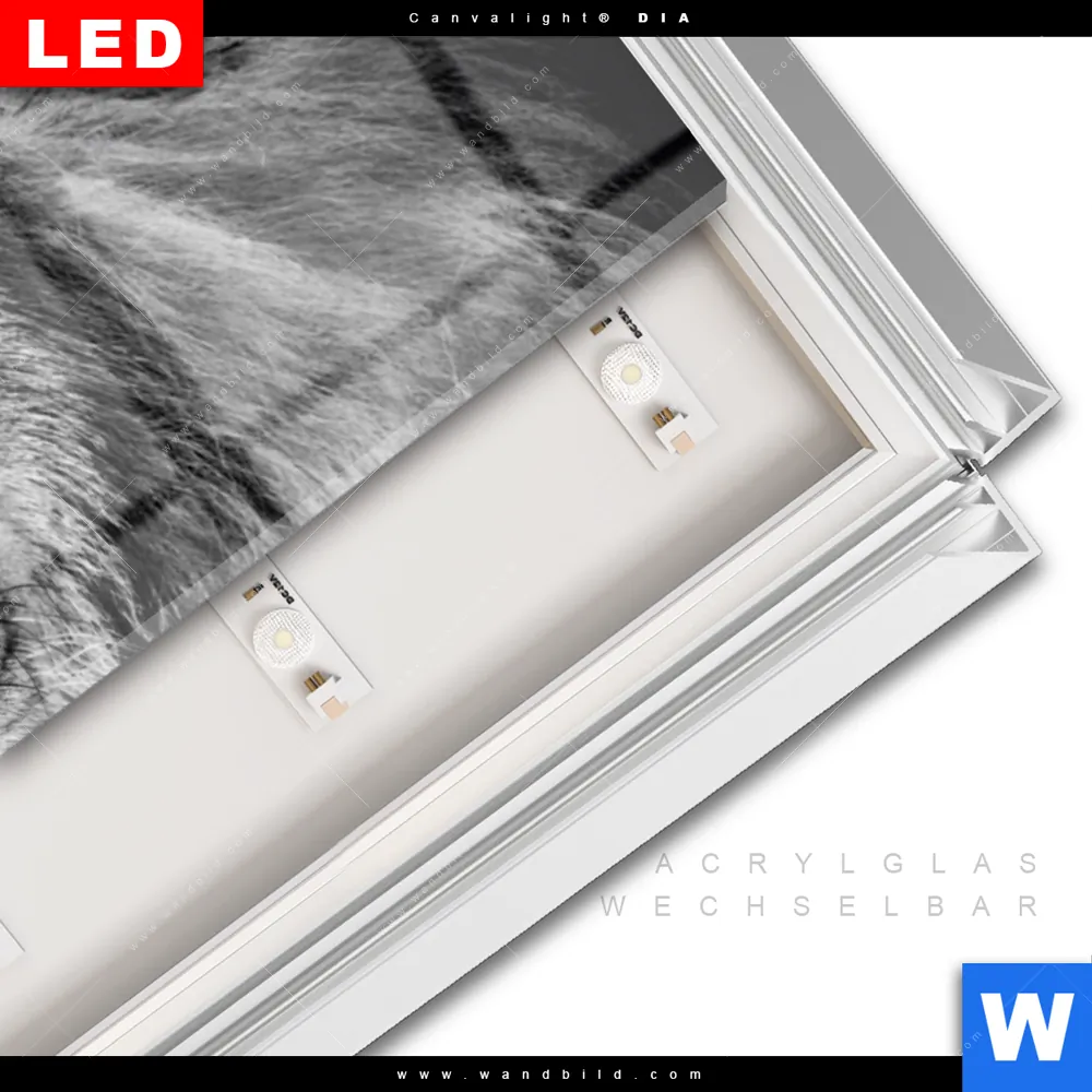 LED-Glasbild mit austauschbarem Acrylglas-Druck (Wechselbild)