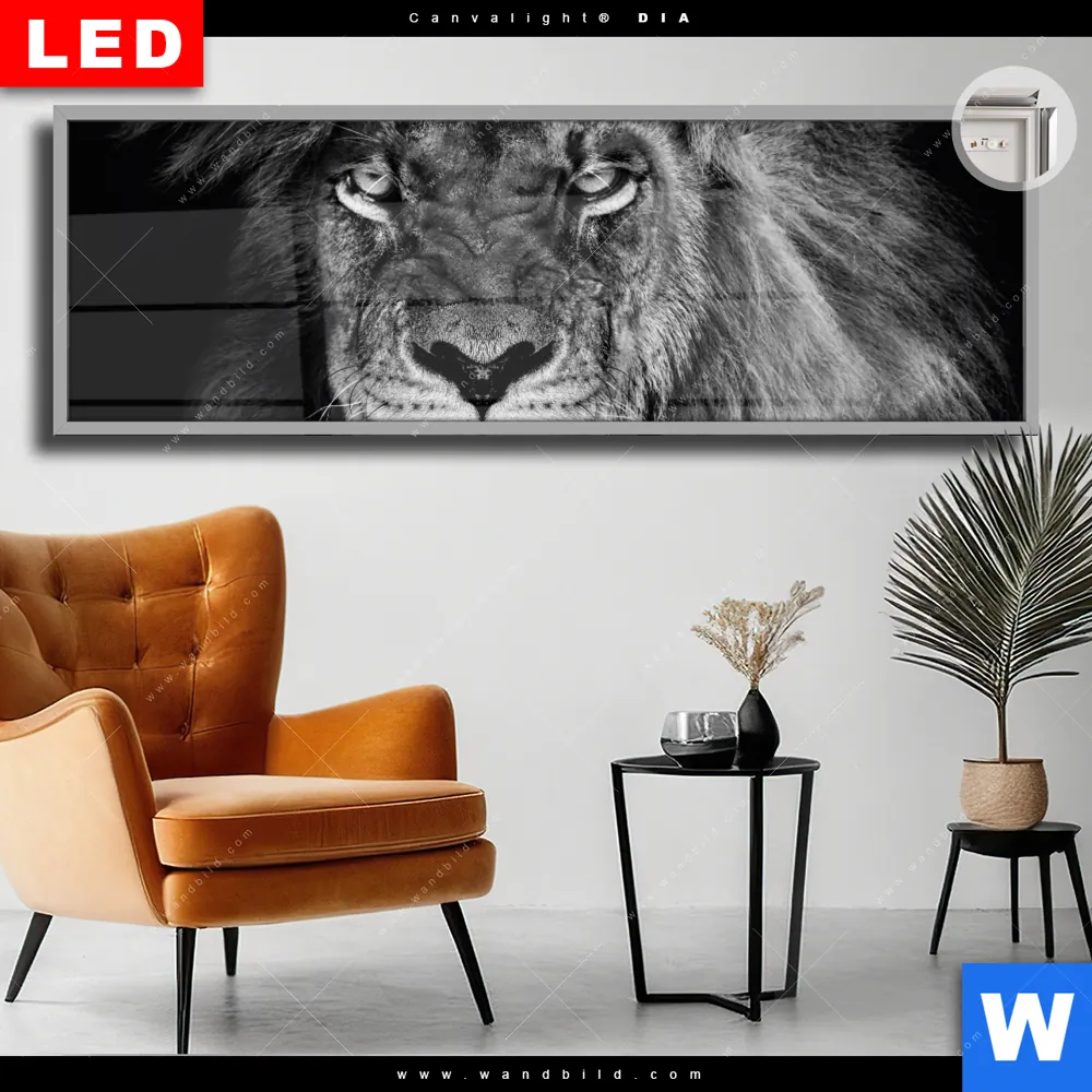 Canvalight® DIA Leuchtbild | Löwe Schwarzweiß | Panorama