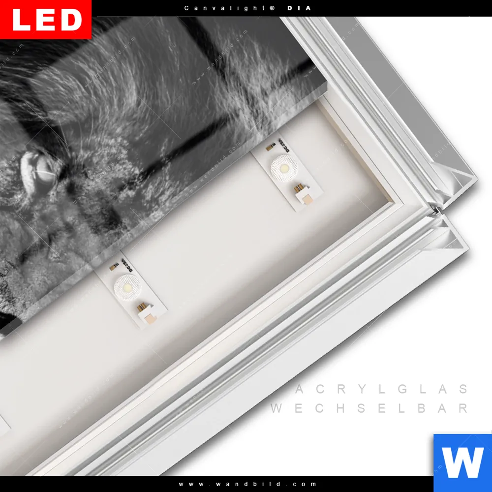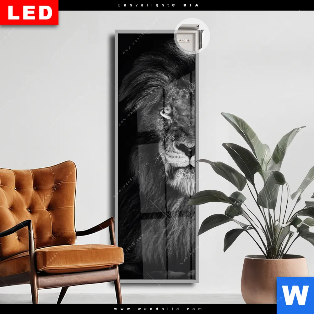 Canvalight® DIA Leuchtbild | Löwe Schwarzweiß | Schmal