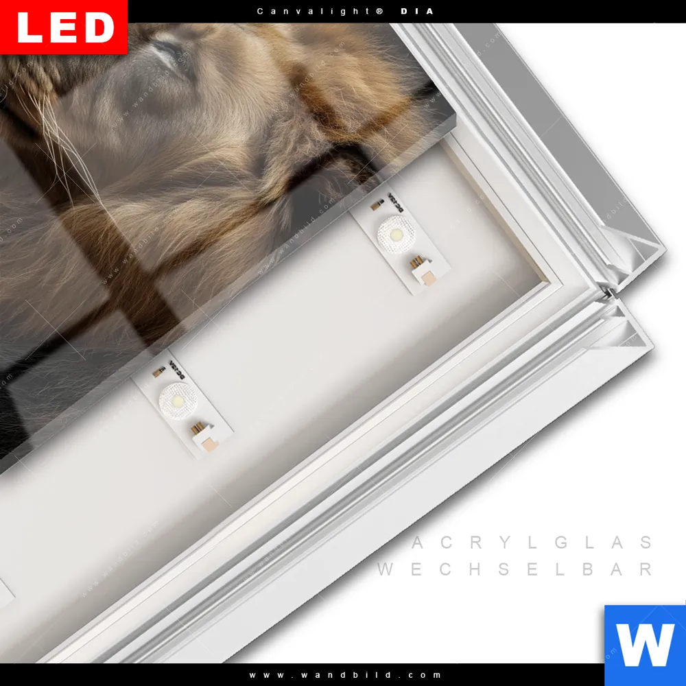 LED-Glasbild mit austauschbarem Acrylglas-Druck (Wechselbild)