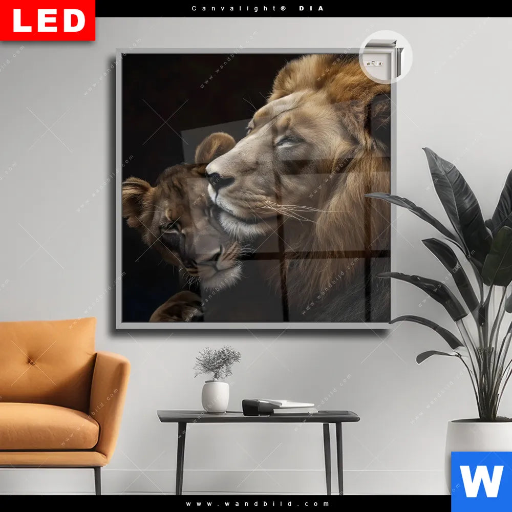 Canvalight® DIA Leuchtbild | Löwen - Stärke und Zärtlichkeit | Quadrat