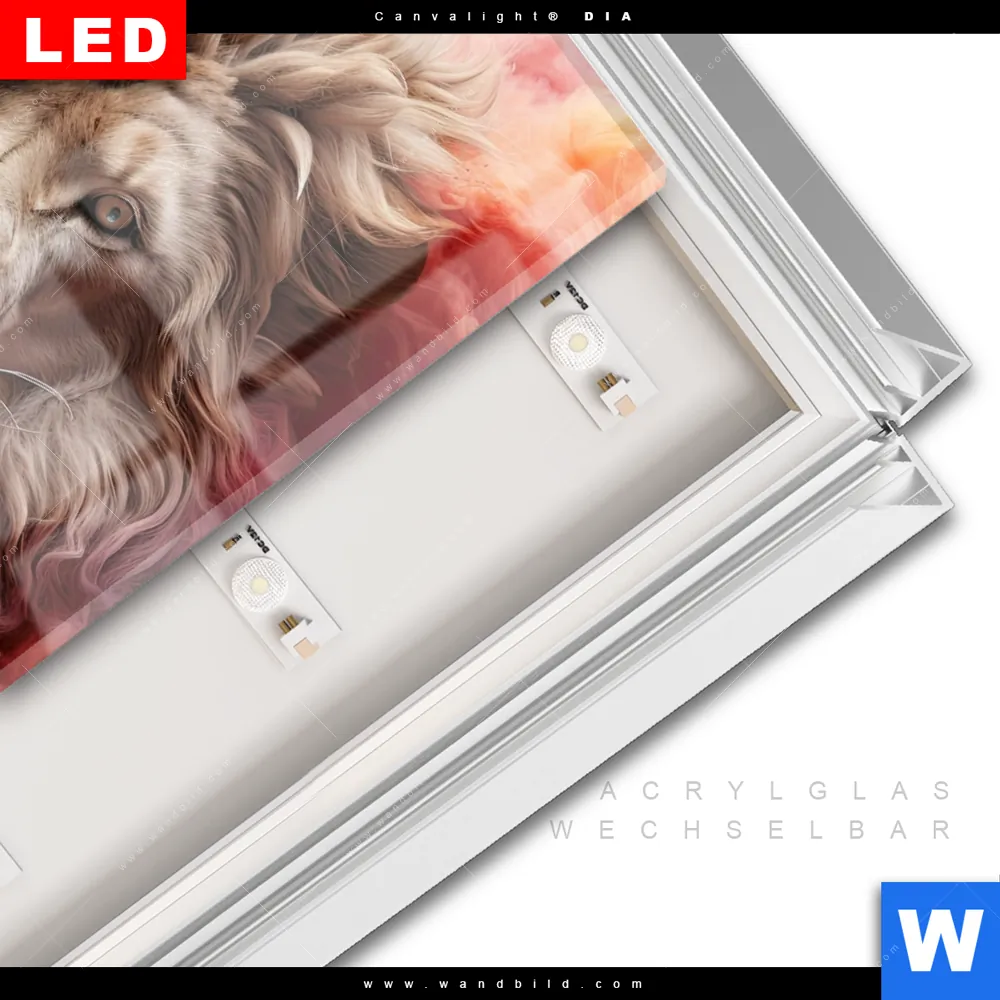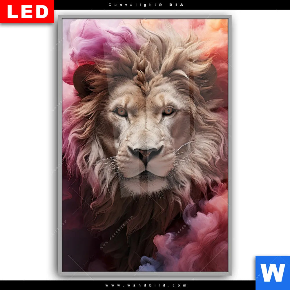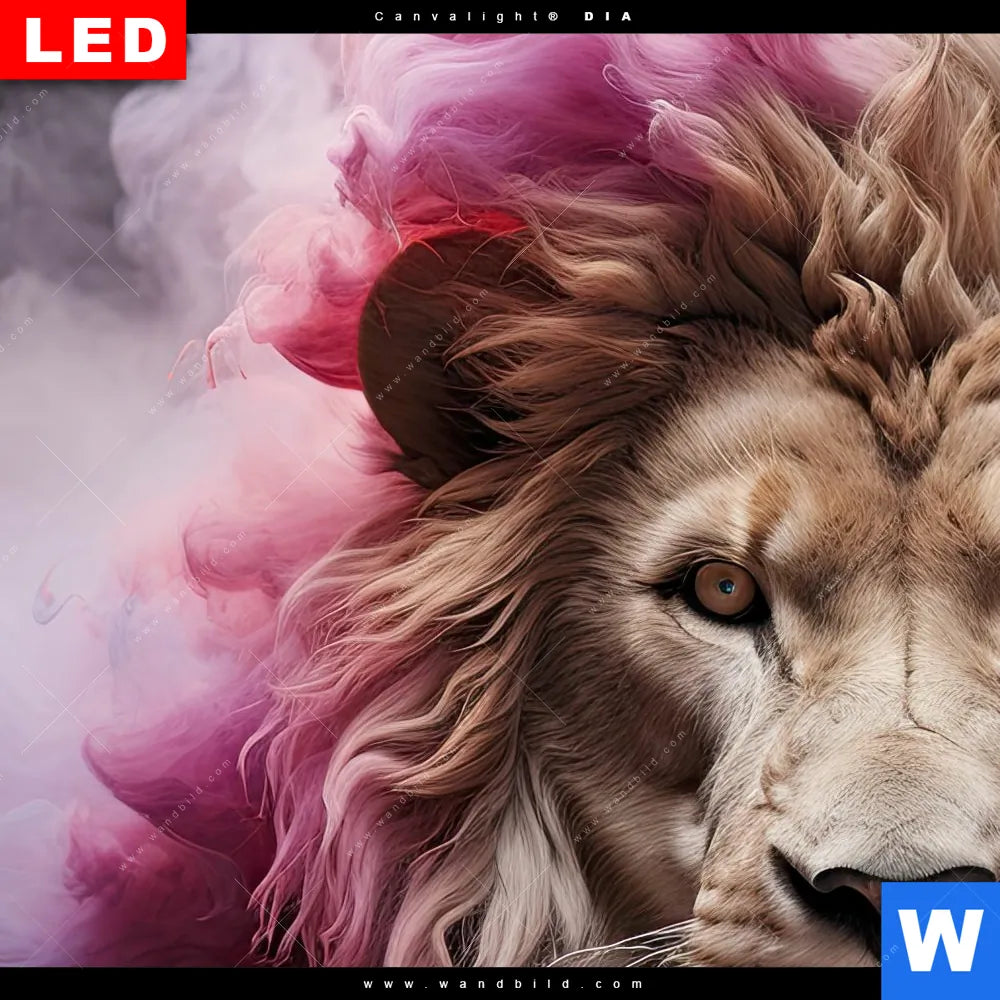 Canvalight® DIA Leuchtbild | Löwengesicht in buntem Rauch | Hochformat