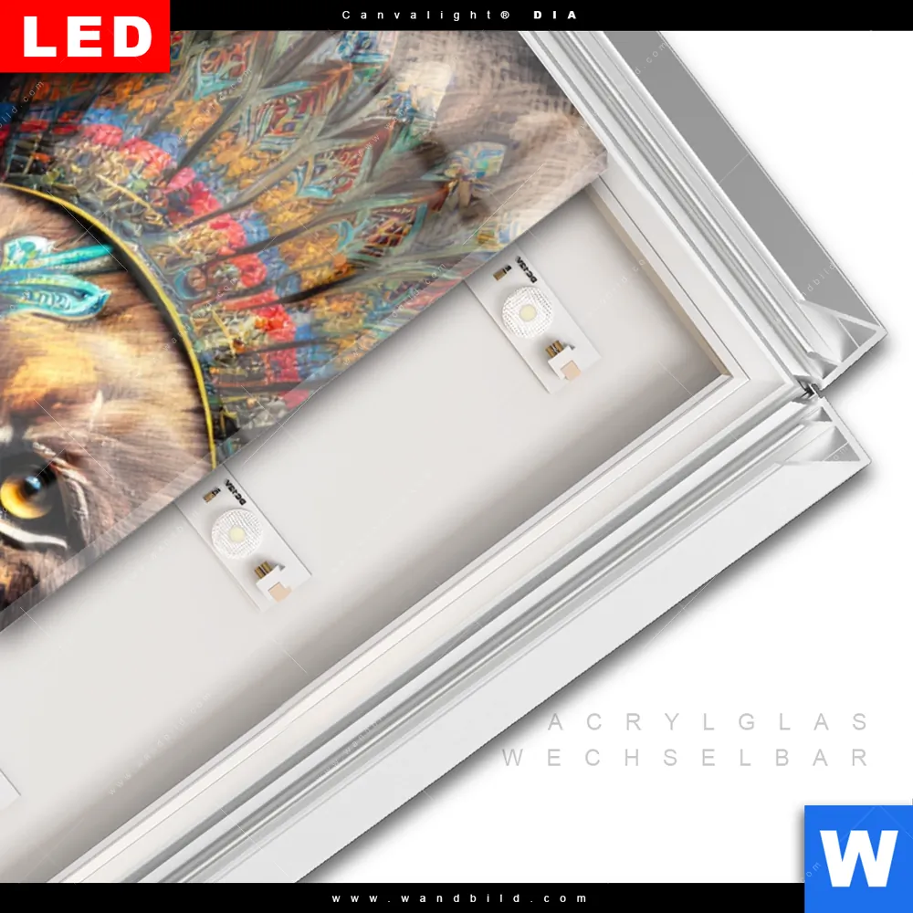 LED-Glasbild mit austauschbarem Acrylglas-Druck (Wechselbild)