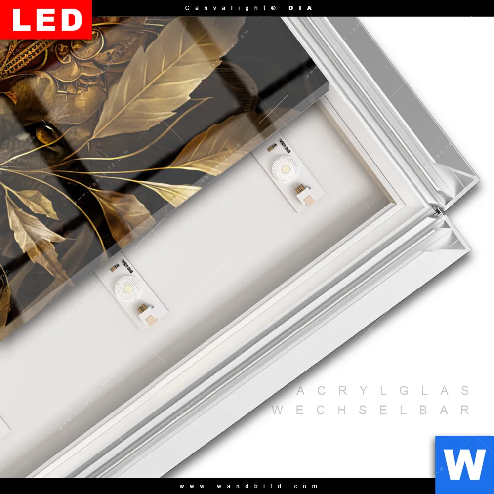 LED-Glasbild mit austauschbarem Acrylglas-Druck (Wechselbild)